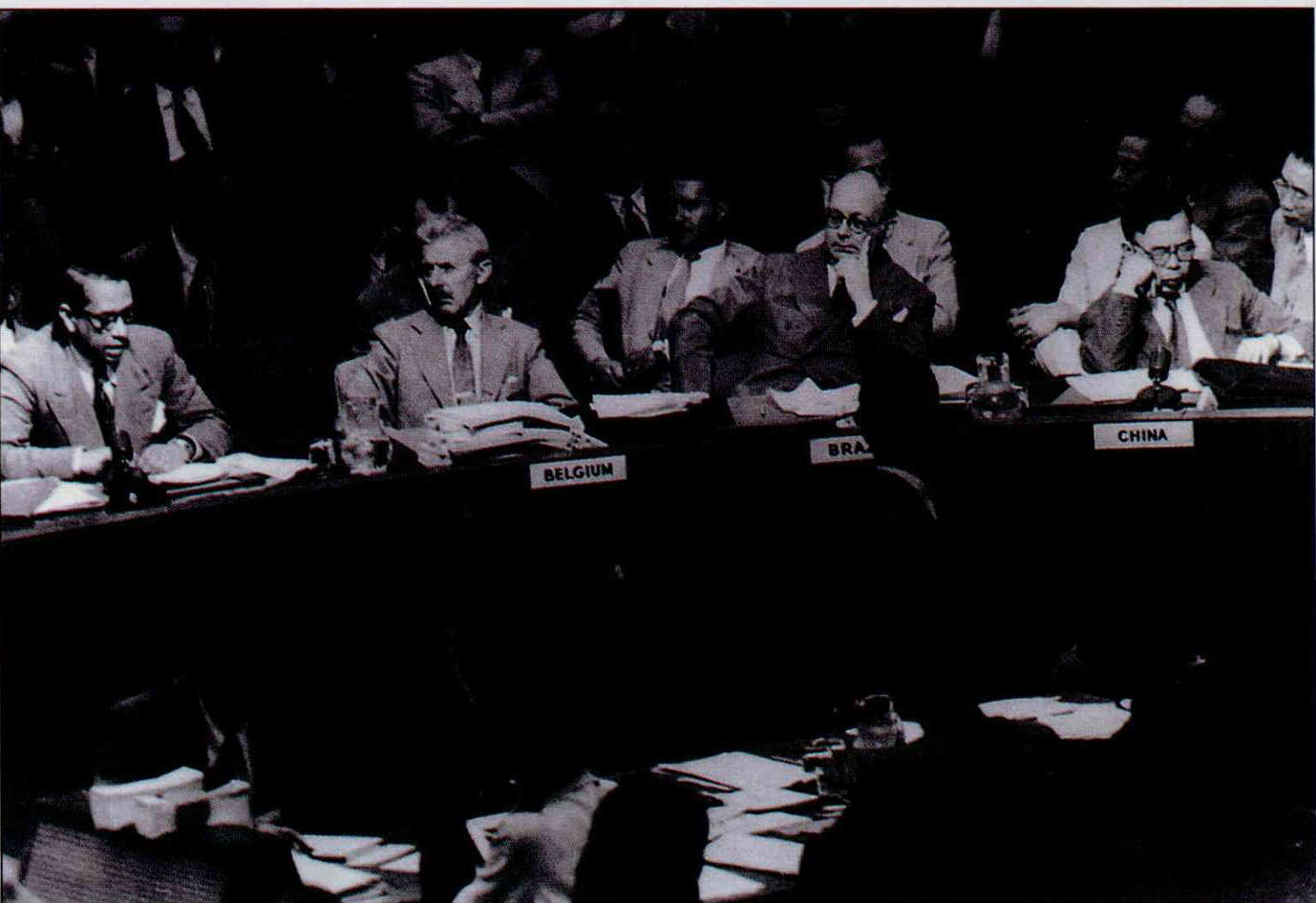 As one of the founder members of the United Nations Organization, the Re public of China has a proud history of participation in its activities. The photo shows a meeting of the UN Security Council in August 1974; on the right is R.O.C. Ambassador Chiang Ting-fu . (photo courtesy of Central News Agency)