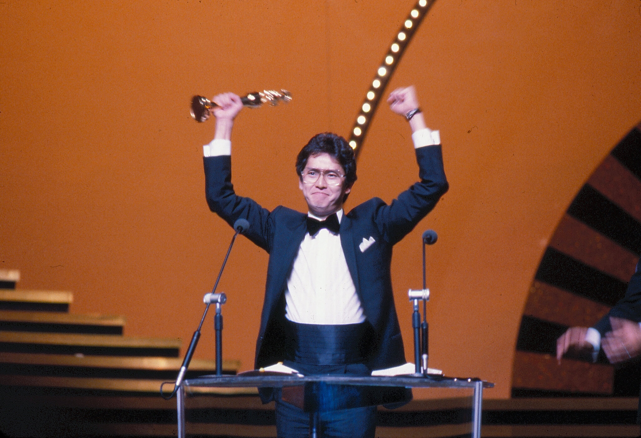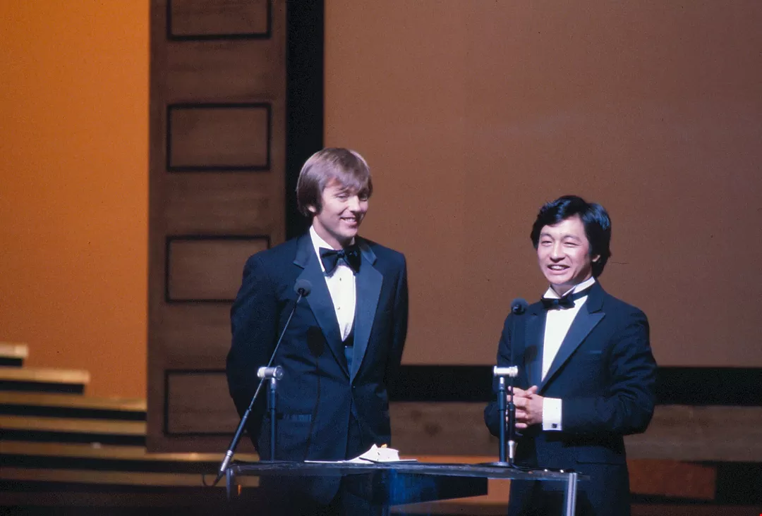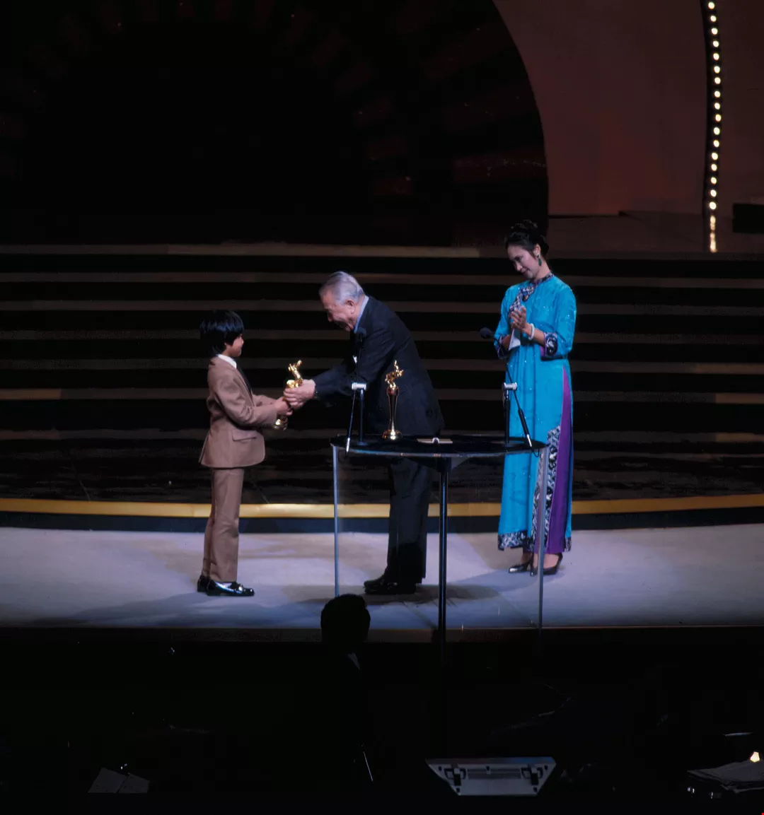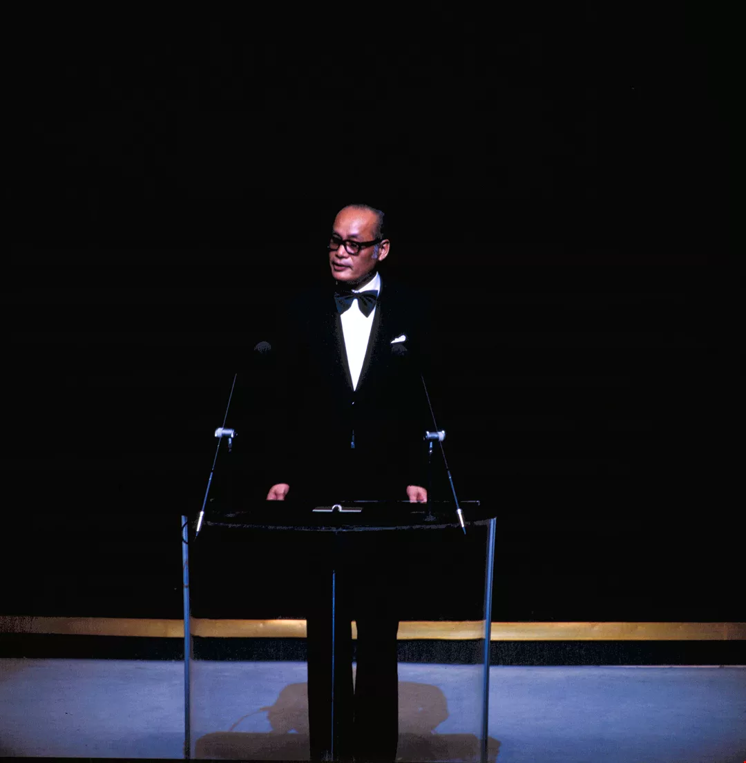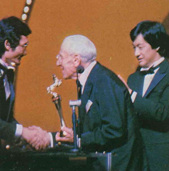 Renowned Hollywood director George Cukor presents the award for best director to Hsu Ke.