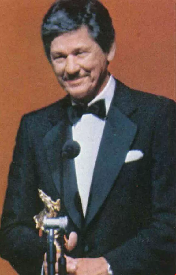 1. Hollywood director George Cukor receives a presentation from Dr. James C. Y. Soong for his outstanding contributions to the movie industry. 2. James Mason, who appeared at the ceremony two years ago, remarked on the prosperity of Taiwan and the general kindness of the people. 3. French actor Alain Delon receives a trophy for on his return visit this year being an outstanding actor of the year. 4.5.6. Deborah Roffin, Charles Bronson, Chris Mitchum. 7.8. Eva Gabor and John Ritter, who appeared at the awards ceremony two years ago and last year, respectively. 9. This year's winners come on stage to take a bow at the end of the ceremony.