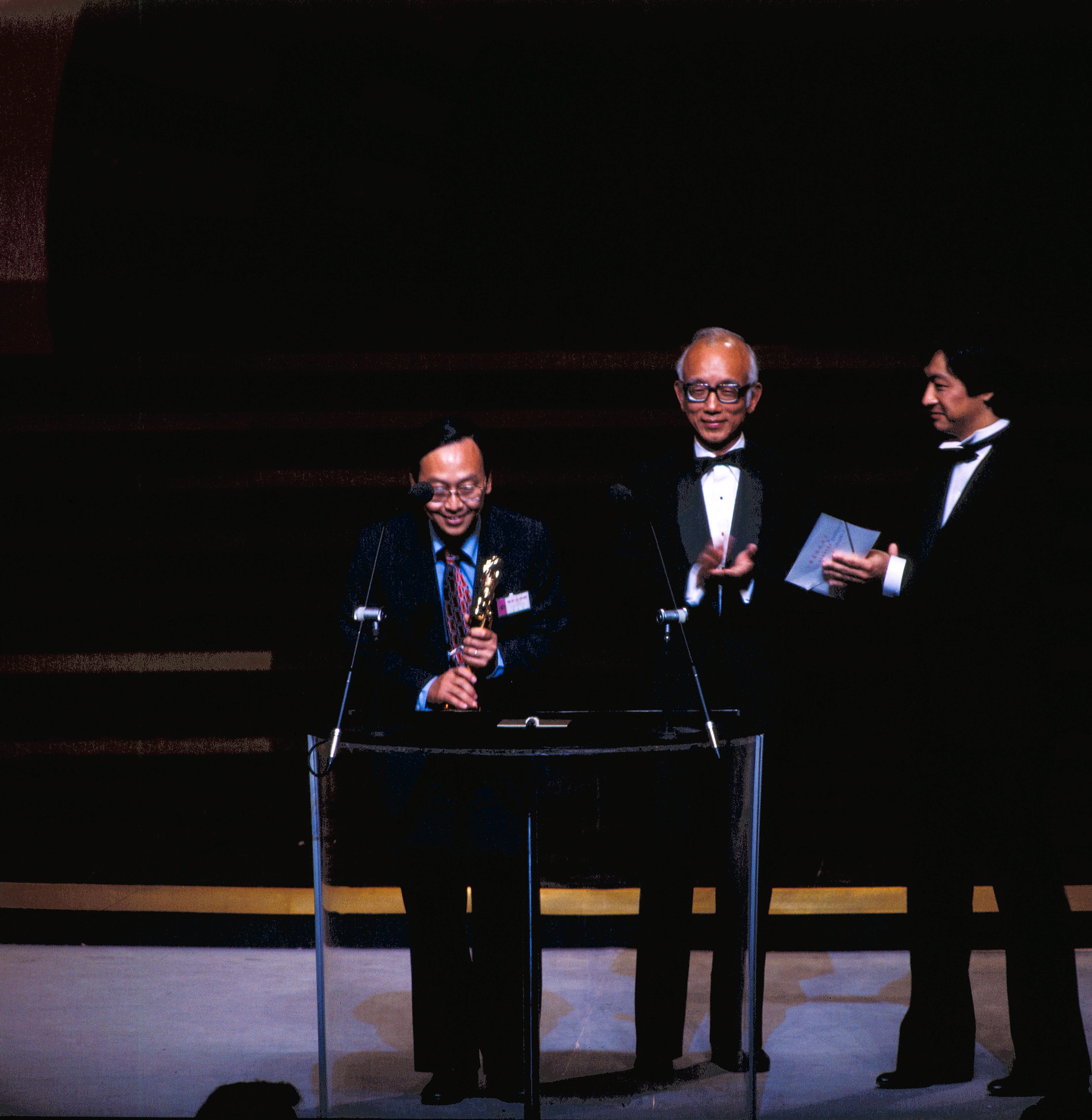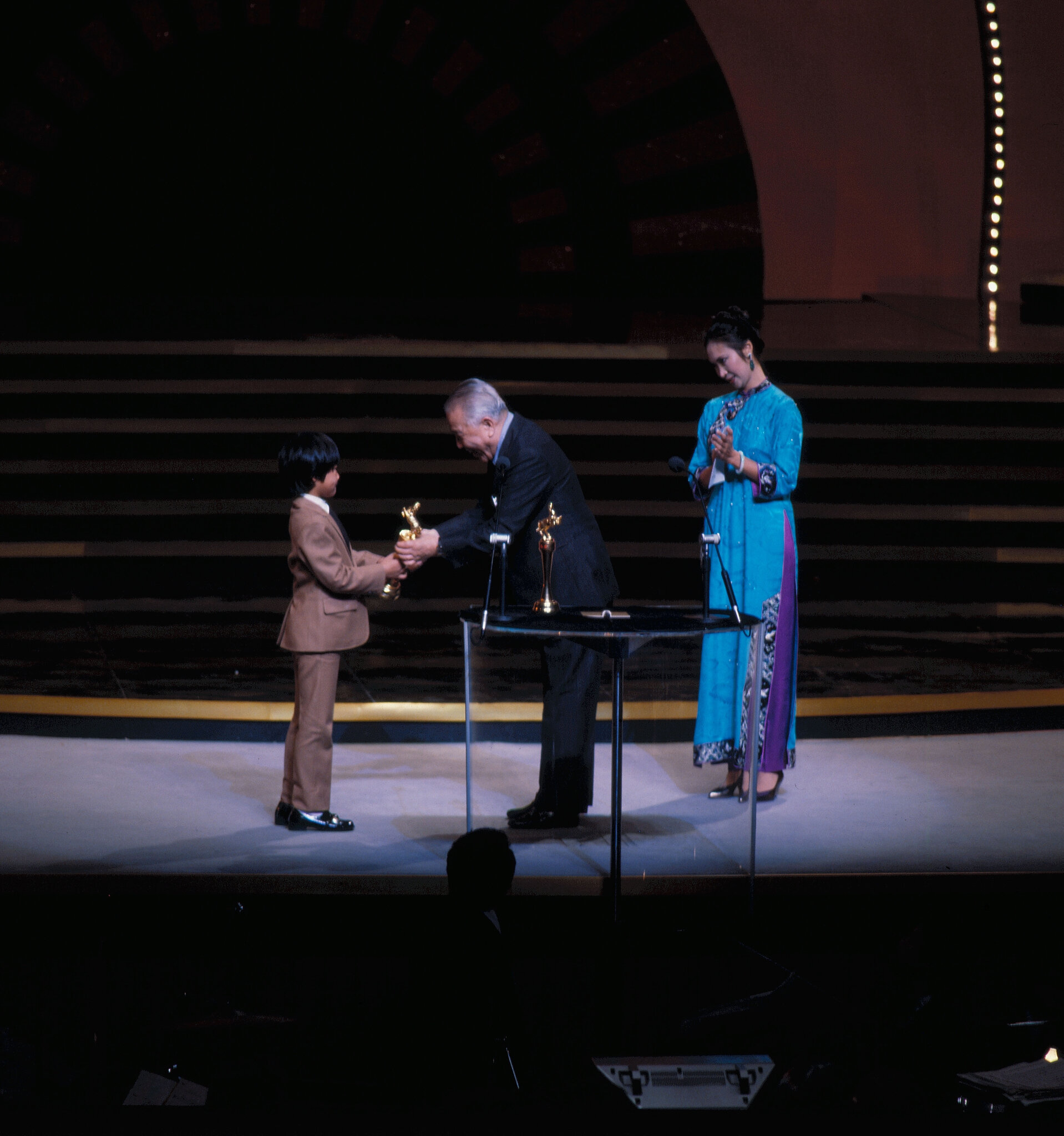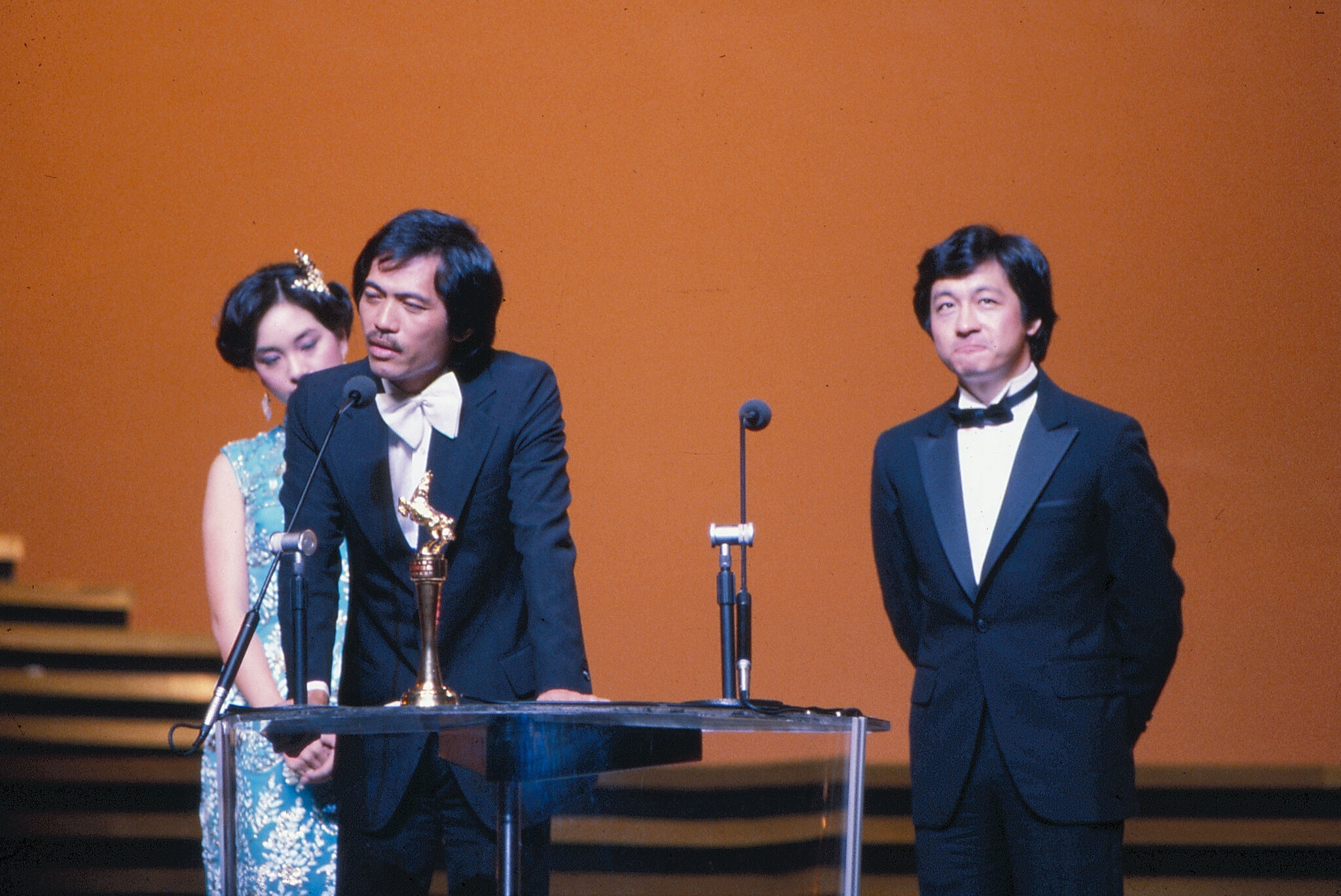1. Chang Ai-jia won the award for best actress, presented by American actress Jill Ireland, wife of Charles Bronson. 2. Renowned Hollywood director George Cukor presents the award for best director to Hsu Ke. 3. Wang Lai-won receives the award for best supporting actress. 4. Wang Jue receives the award for best supporting actor for his performance in The Coldest Winter in Peking. 5. Tan Yung-lin receives the award for best actor for his performance in If I Were for Real.