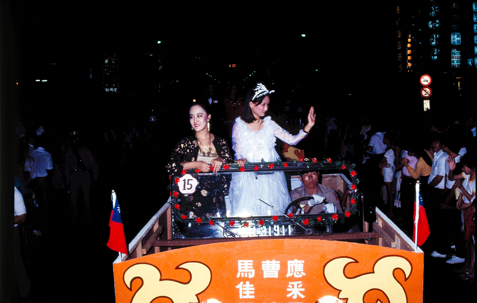 1. Students from the Dance Department of the University of Chinese Culture. 2. You Min, famous Taiwan actress, and General-manager of a local movie company. 3. A piece from Chinese Opera is performed. 4. Performance by a Broadway dance troupe. 5. Thousands of fans turn out for the parade of floats. 6. Traditional martial arts performance. 7. The three nominees for best actress.