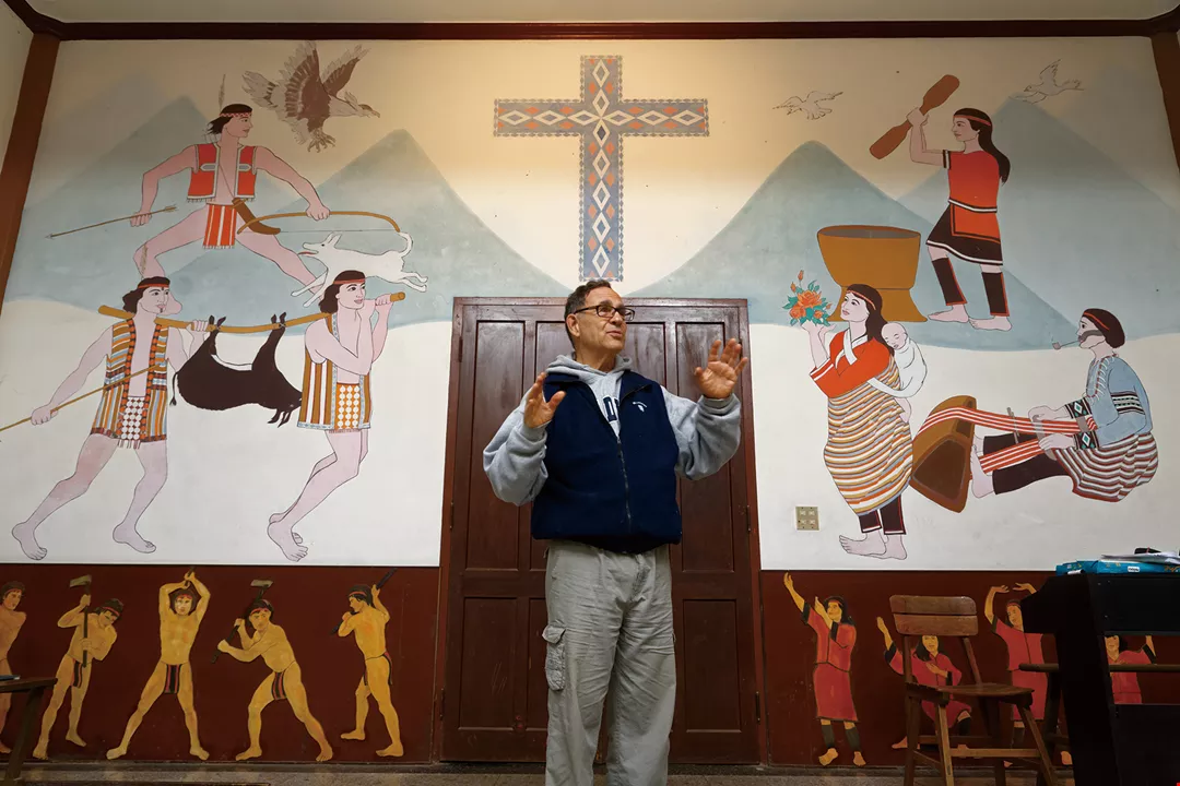 As you approach the Atayal indigenous village of Qingquan in Wufeng Township, Hsinchu County, you see a little church nestled in verdant hills, its gray walls decorated with stained-glass windows. Against a cloudy sky, the Holy Cross Catholic Church is conspicuous yet reserved. Its historical ambiance seems to make time stand still, conveying a sense of serenity. For Father Barry Martinson, the keeper of this church, and the village of Qingquan, 40 serene years have passed as if in the blink of an eye.