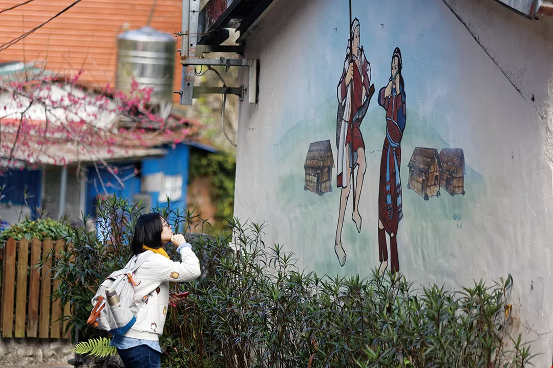 To honor the indigenous villagers, Martinson painted the wall inside the entrance with a mural composed of Atayal imagery arranged around a Christian cross. Without words or language, Martinson has painted his love for the village of Qingquan and its inhabitants.