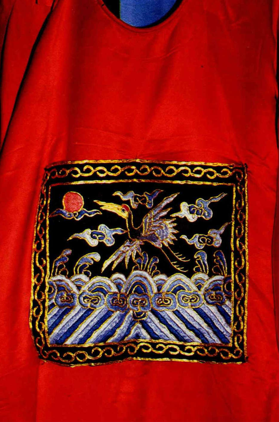 Emblems such as this distinguished between high and low ranking officials in imperial times, but today in Peking opera they are used more for effect than for signifying rank.