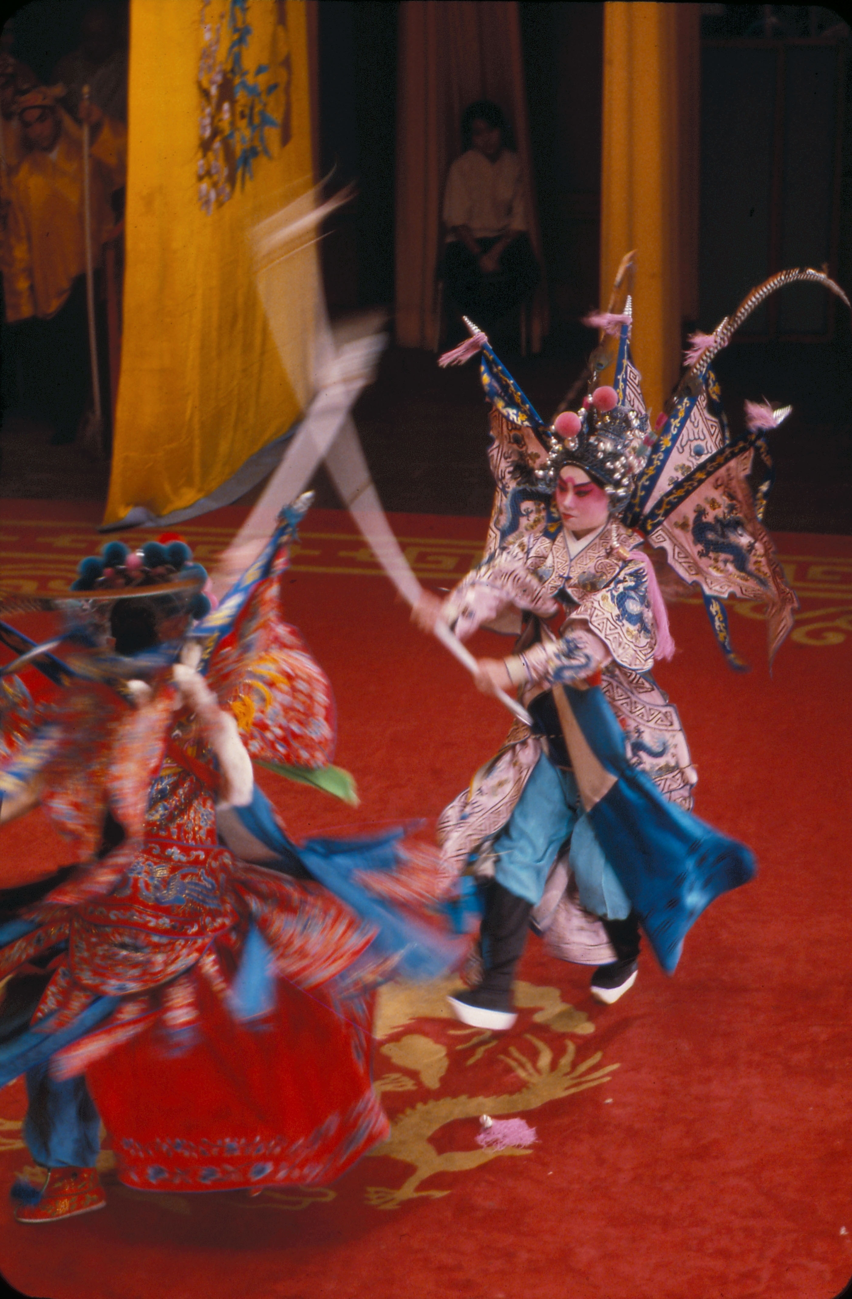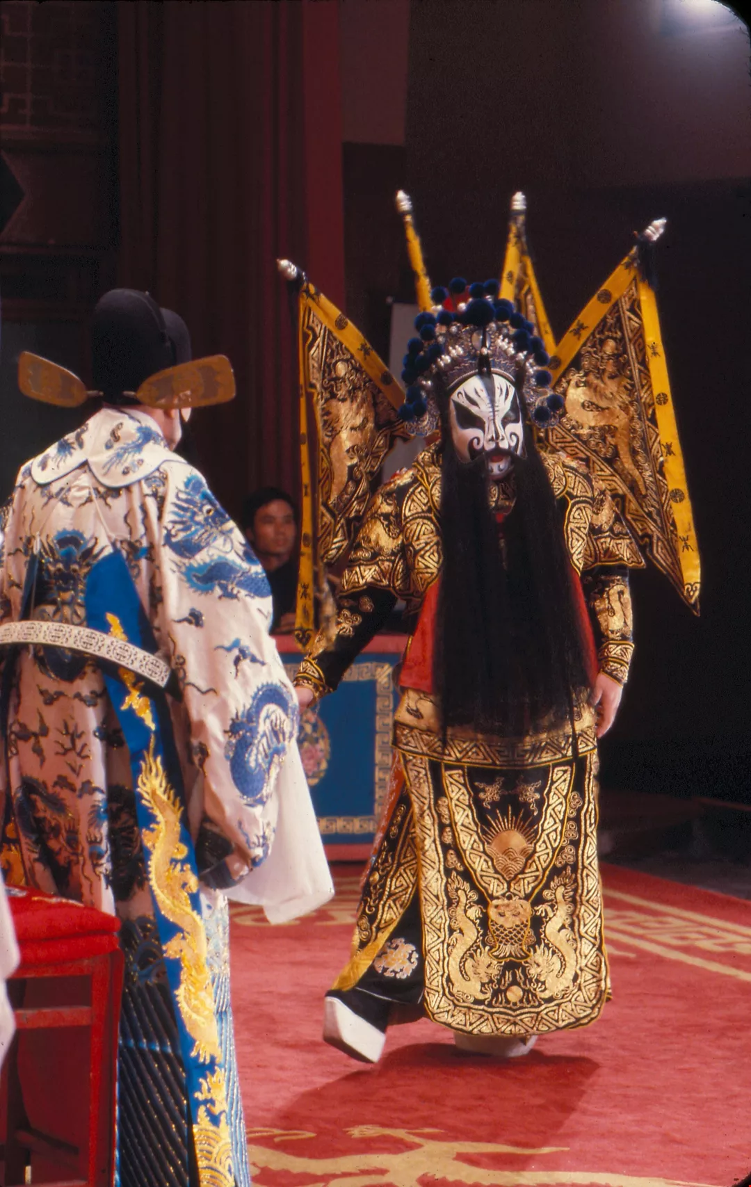 Peking opera costumes evolved over the centuries from the those worn by traditional dancers. By the Wanli reign (1753-1620) of the Ming dynasty Peking opera was already firmly established and most of the costumes had taken on their present day forms. Because they evolved from dancing costumes, Peking opera costumes are designed to look impressive while at the same time allow free movement.
