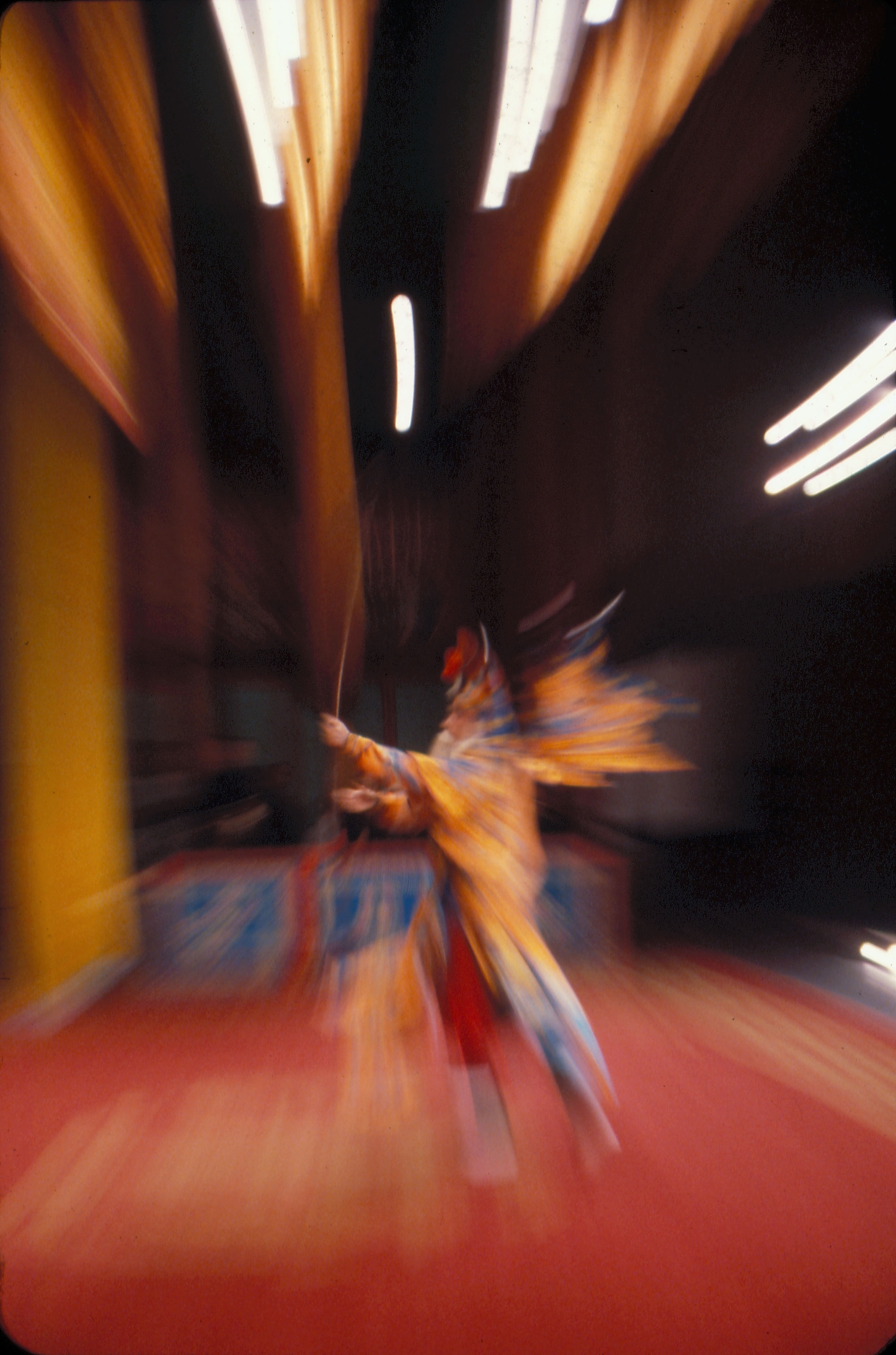 Costumes present a flash of color during a battle dance.