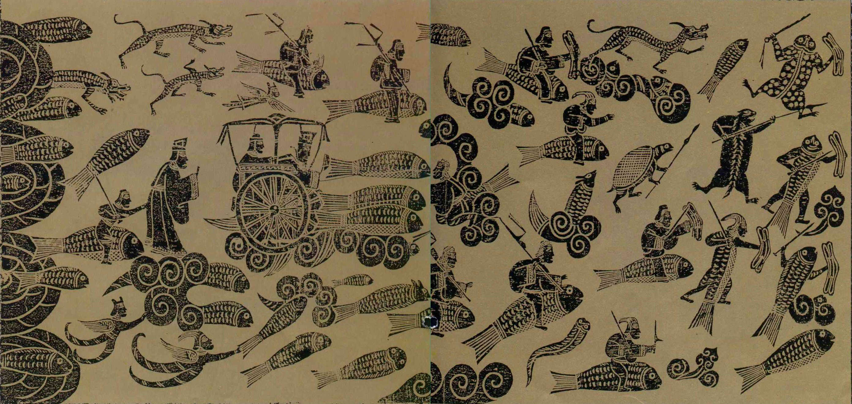 To style ancient China a veritable kingdom of fantastic animals would hardly be going too far. From their depictions in myths, stone drawings, and the Shan-haiching, or The Classic of Mountains and Seas, the world at one time would seem to have been filled with imaginary creatures, and the rulers and sages of far antiquity are often portrayed in half-human, half-animal forms. With the advance of human civilization, the prominence of imaginary animals has gradually declined, but fantastic creatures such as the dragon, a symbol of the numinous, still appear in every corner of our daily life.