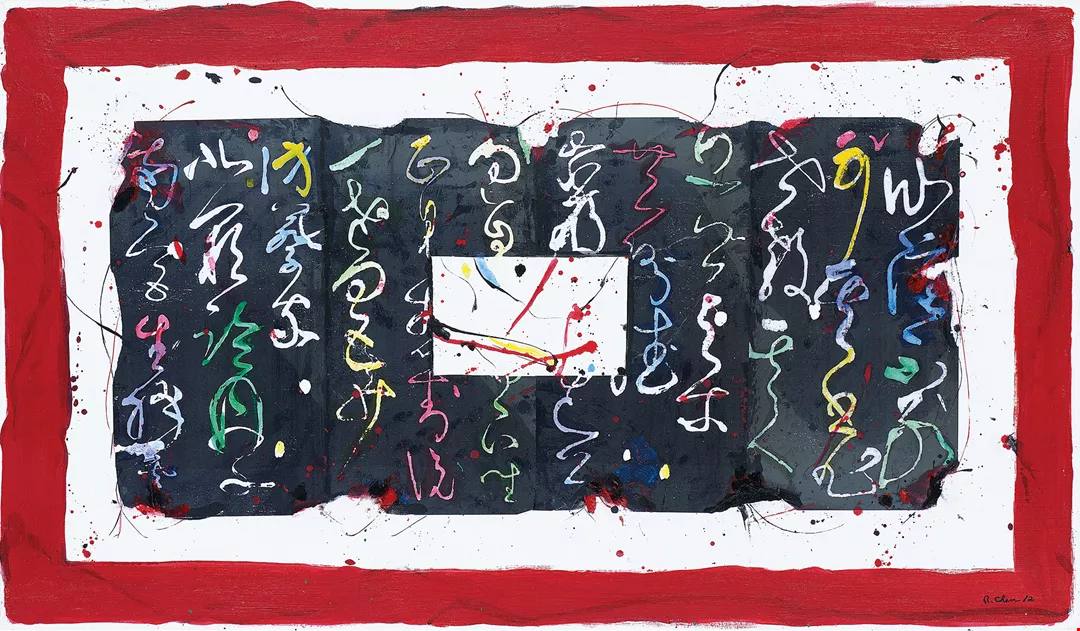 Press the start button on a computer and a floating window icon pops up on the screen. This is the start screen of the Microsoft Windows operating system. Although the graphic is familiar the world over, only in Chen’s eyes did it become a source of inspiration. He further incorporated impressions of the shapes of Russian icon paintings and made use of the calligraphic brush style known as “wild cursive” script. This was the origin of his “Window” series. At the time Chen was already 57.