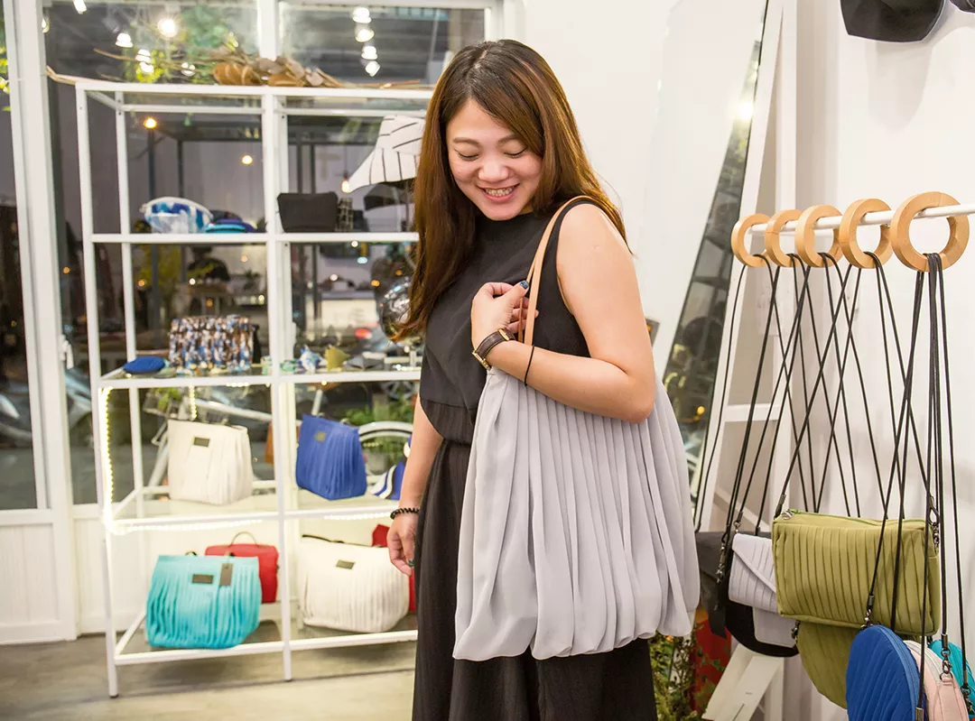 Maggie Chang, founder of Vingt Six, produced her first shoulder bag, one shaped like a skirt and featuring a soft exterior and firm interior, to meet her own needs. She went on to open a stall, take the bag to market, and forge connections with other young designers in her field. The young designers shared ideas and information among themselves, and then rented a studio together. Their friendly relationship and mutual support eventually led to Chang selling her products overseas, and, in 2016, opening a designer boutique: O.Office.