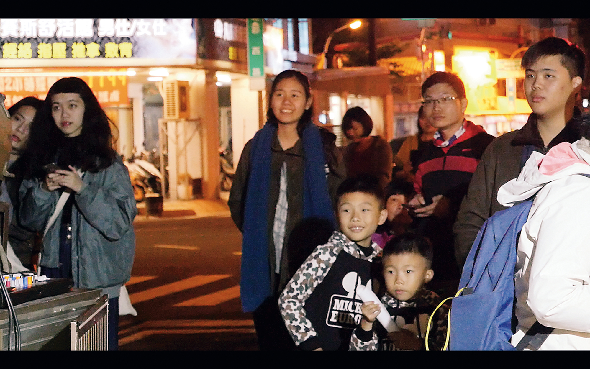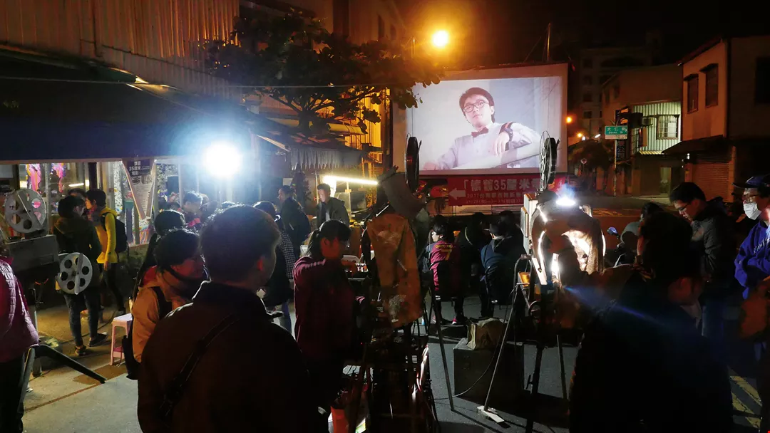 On Tainan’s Junxi Street, people enjoy a rare opportunity to catch an open-air movie. (courtesy of Bear Men Film Studio)