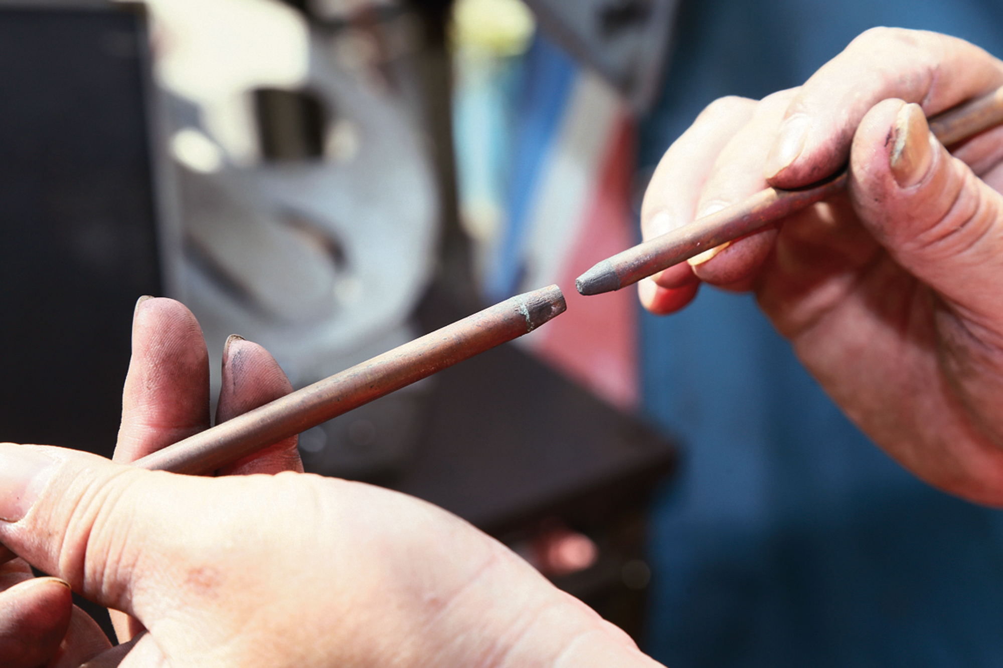 Because a movie shot on traditional film requires on average 4.5 cans of film, screening them requires two projectors. When one reel spins out, the projectionist must immediately switch to another projector to show the next part of the film. Many people are under the impression that a projectionist’s job is pretty easy—just load the film and press a button. But a projectionist must constantly monitor the image appearing on the screen and keep an eye on the functioning of the projector. A carbon arc light projector, for example, uses two carbon rods, one positive and one negative. Up to a kilowatt of electricity courses between them to produce the lamp’s powerful light. As the movie is projected, the rods burn down, and the projectionist must constantly monitor the distance between them. If they are allowed to get out of adjustment, the light can suddenly fade and the film projection will be interrupted.