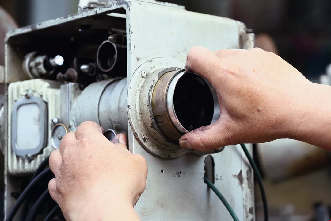 Showing movies on an old-fashioned projector relies on the techniques a projectionist hones over time, such as adjusting the gap between the arc light’s carbon rods, oiling the sprockets, and focusing the lens.