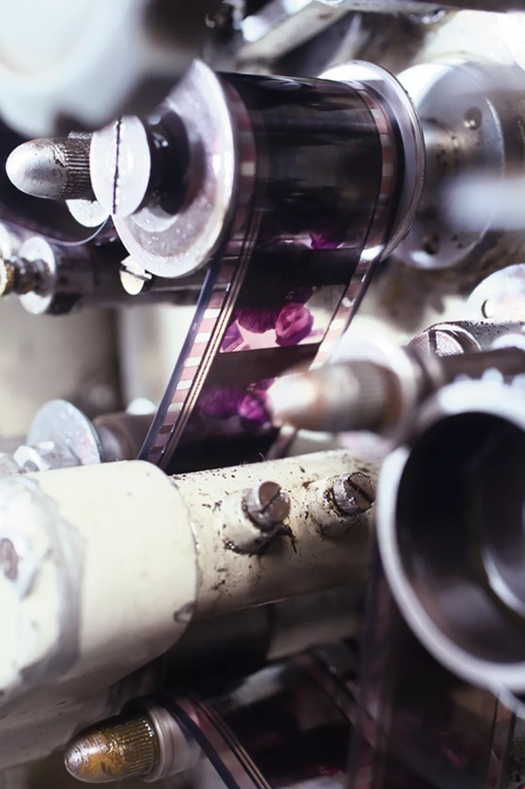 The film projector’s sprockets whirr as it projects a movie at 36 frames per second. The projectionist must pay constant attention to the projector’s every movement and to the film feeding through it. The perfect screening is arrived at only through a delicate dance between projector and projectionist.