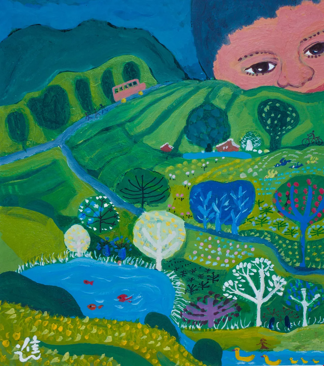 At first, Cheng taught children to draw lines and shapes as a form of play, and encouraged them to find inspiration in nature. This is turn influenced his own painting style, and the world of children came to dominate his paintings.