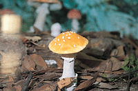Pine mushrooms or matsutake (Tricholoma matsutake) live in a symbiotic relationship with pine trees. They can occasionally be seen on the floor of pine forests in the mountains of central Taiwan, at locations such as Patungkuan and Mt. Ali. To date no method of artificially cultivating pine mushrooms has been developed, so the extremely rare wild mushrooms have sometimes sold for up to NT$10,000 a kilogram.