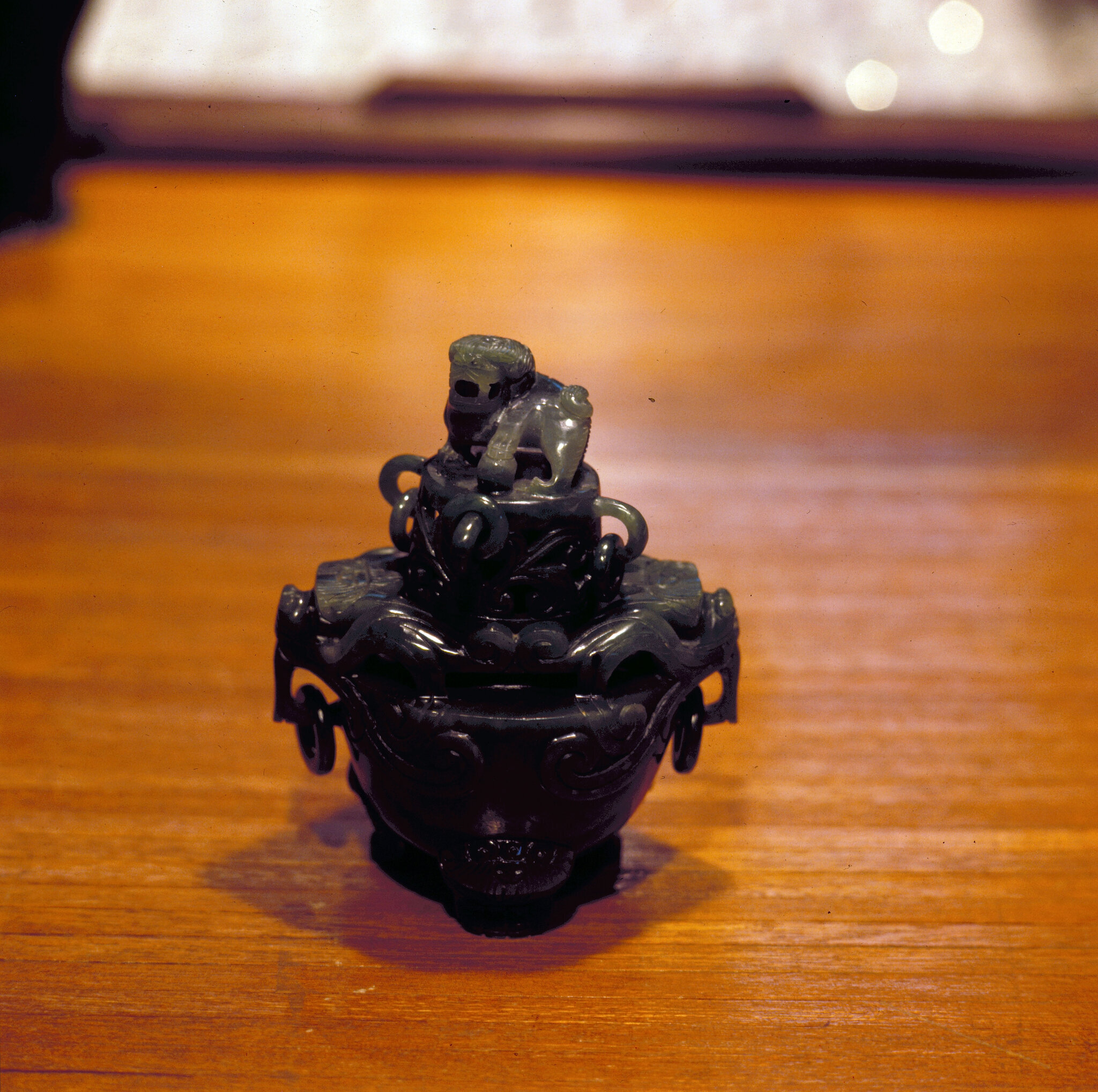 Jade can also be made into artifacts. This jade incense-burner is typically Chinese.