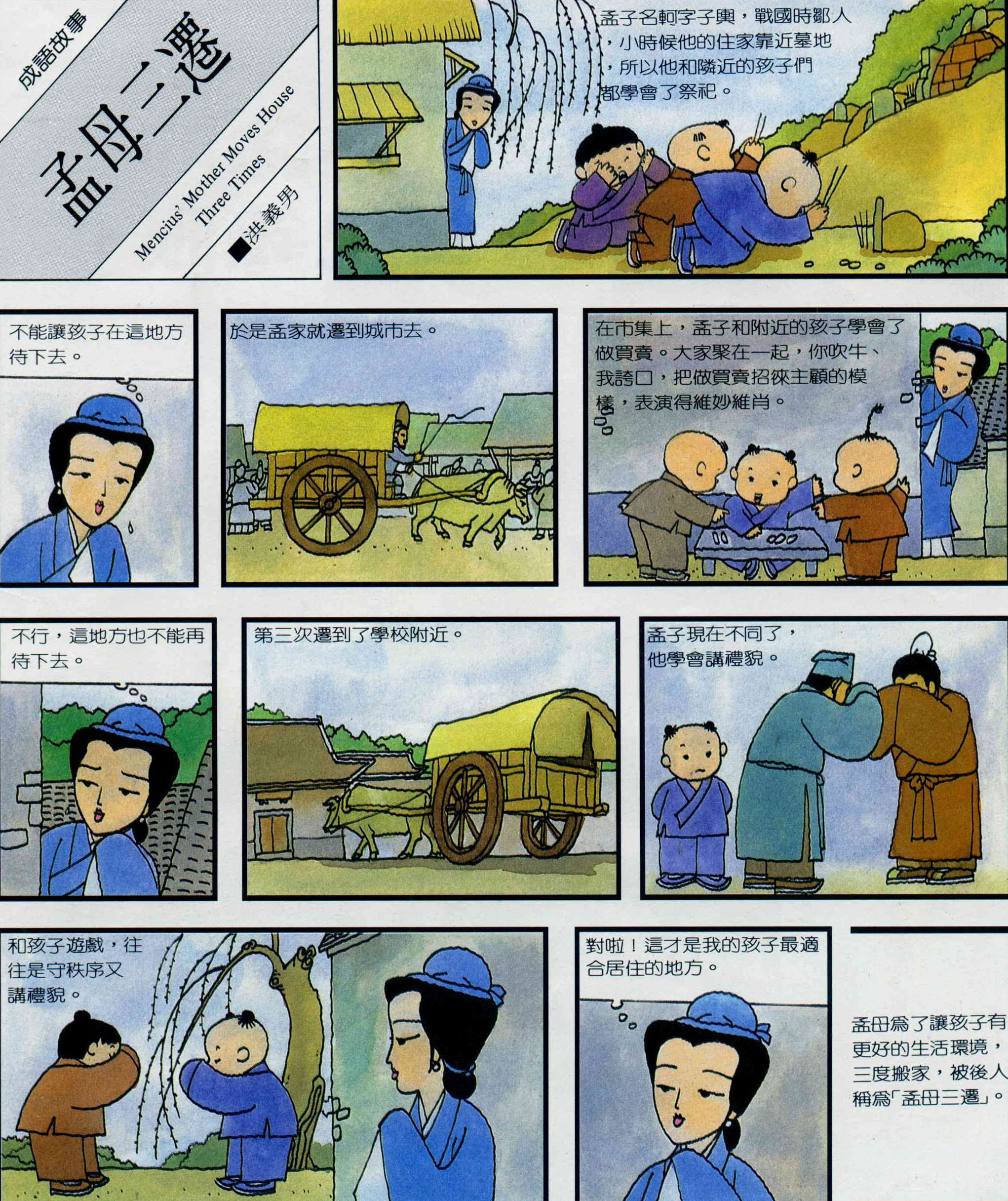In order to find her son a better living environment, Mencius' mother moved to three different locations. The expression "Mencius' mother moved house three times" was later used to describe a mother who always strives to do the best for her children.
