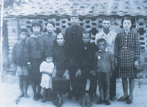When Cheng was in fifth grade, he couldn't do his homework because his stepfather couldn't afford to buy a workbook for him. The first time he skipped school to run off to his birth parents' home in Taoyuan, it just happened that they were taking a picture to send to Cheng's brother--a soldier in the Japanese army stationed in Manila. In this rare family portrait, Cheng (rear left) stands barefoot among his neatly-dressed family members. Cheng's parents are second and third from the right in the first row.