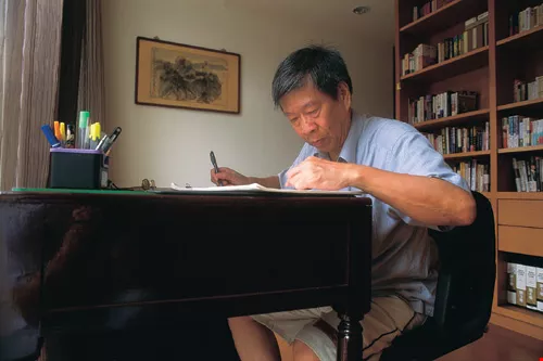 After a recent renovation, Cheng's home of more than thirty years finally has a study. Cheng especially treasures this desk where he does his writing, as his stepfather made it by hand.