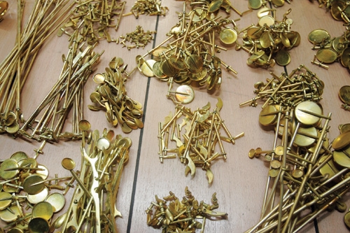 Finally comes the task of assembly. Saxophones have a huge variety of small but sophisticated parts. Take for example the movable "keys" that are pressed to open or close "tone holes" in the sax, thereby determining which note is played. Each key is made up of more than 20 pieces, and each sax not only has 12 keys, but each key has a different shape and construction. This is why the final assembly stage requires the greatest amount of experience and skill of the whole sax making process.