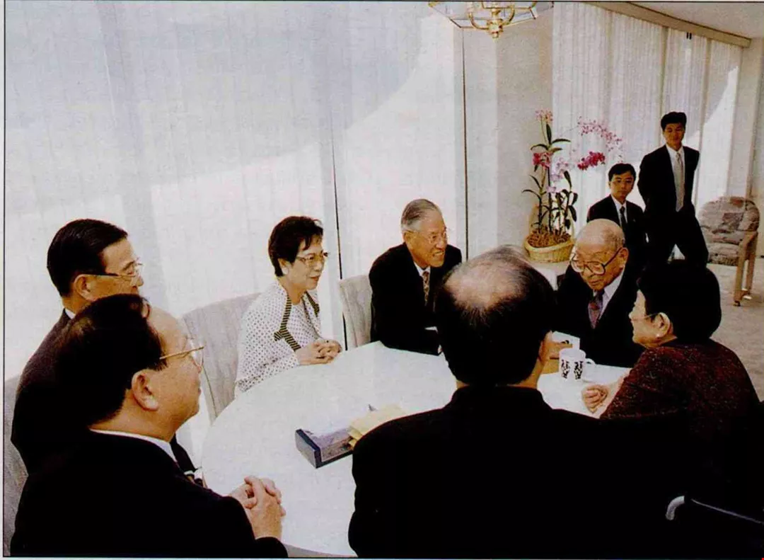 During a stopover in the US state of Hawaii on the way to a conference i n Panama in early September, President and Mrs. Lee Teng-hui made a special trip to see the reclusive "Young Marshal" Zhang Xueliang and Ms. Zhao Yidi, his companion of more than 70 years. National Security Council secretary-general Ting Mao-shih, the then foreign minister John Chang and the then ROC representative in the US, Jason Hu, all joined the Lees on this visit, making for a historic scene. (courtesy of the Presidential Office)