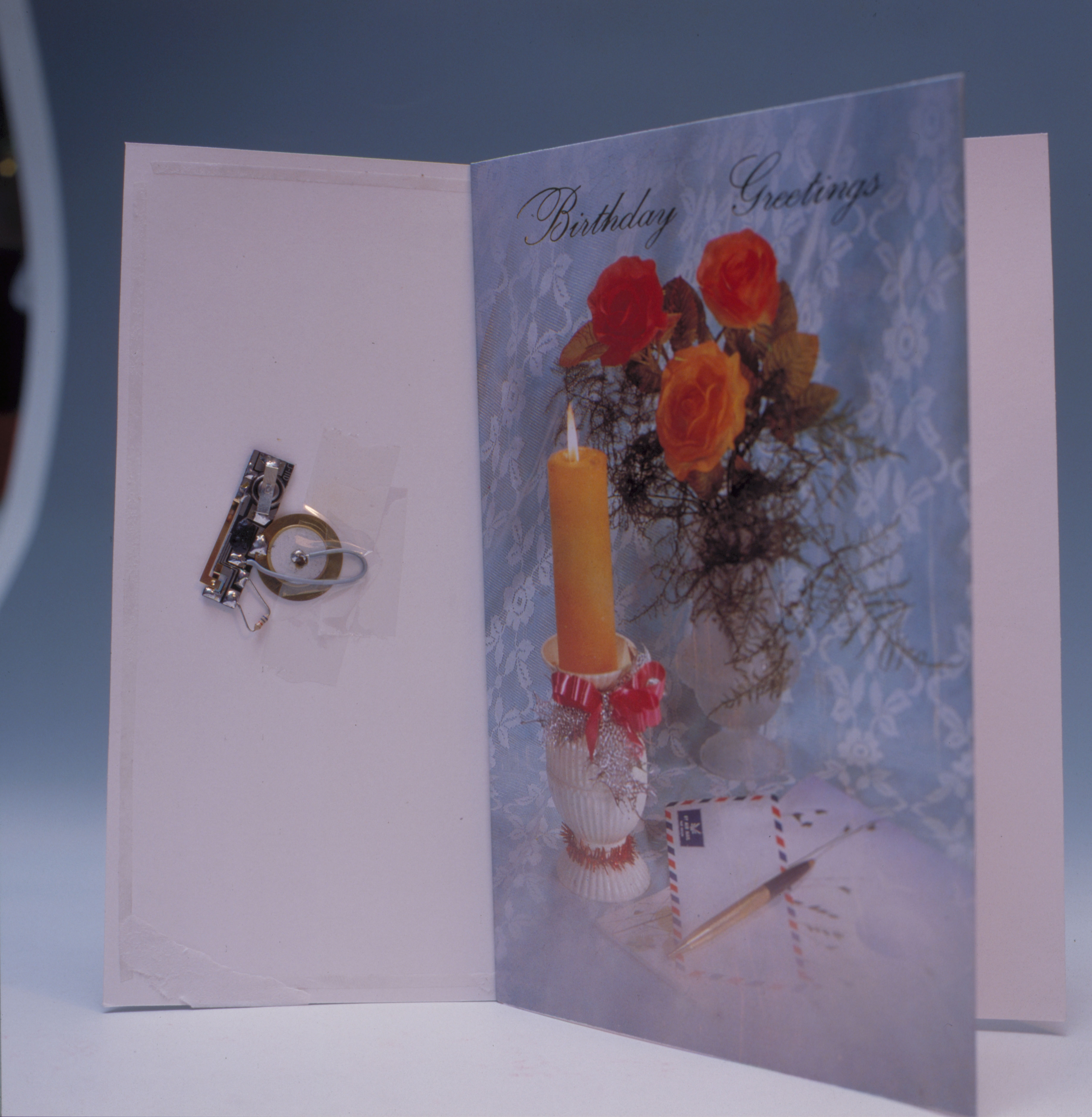 1. The secret behind the magic of the singing card, the tiny circuit. As flat as a credit card, this circuit fits into card and produces the music. 2. The appearance of the music card is not any different than that of ordinary gift cards. 3. While there are many music cards for many occasions the birthday card remains the most popular.