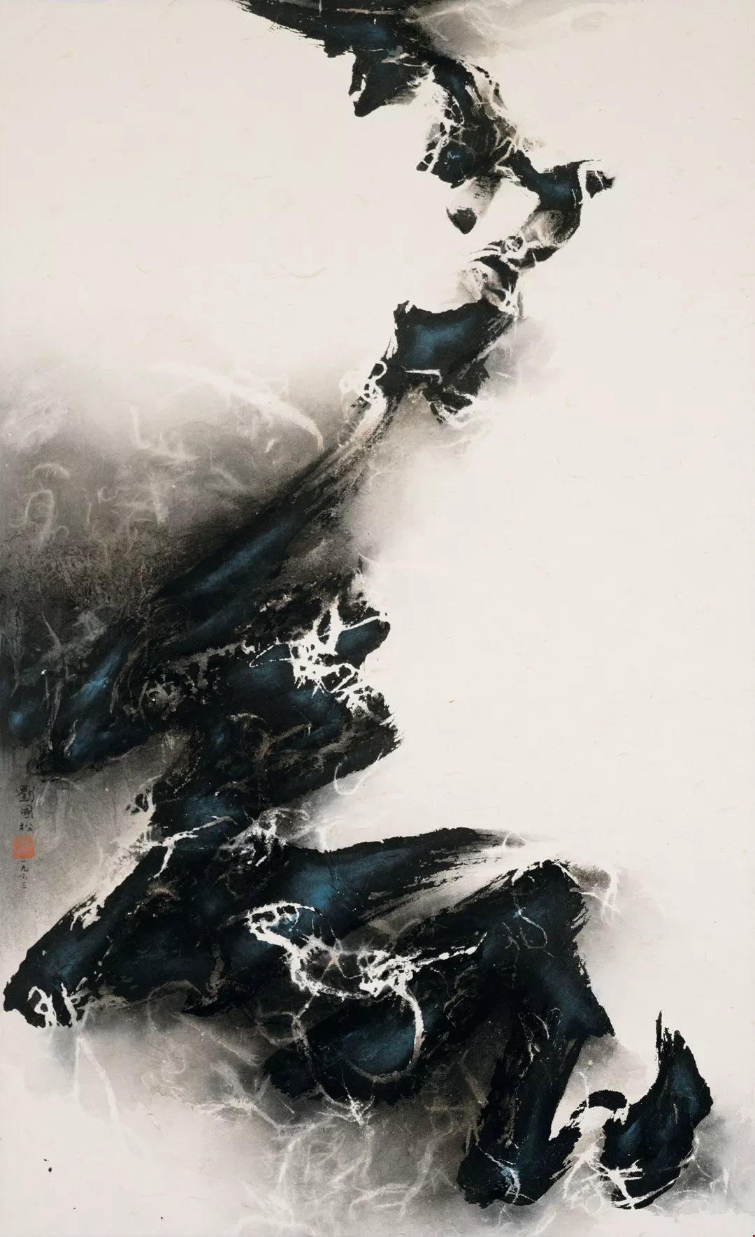 In 1956, he and classmates Kuo Tong-jong, Kuo Yu-lun, and Li Fang-chih formed a painting society they called the Fifth Moon Group. Named after Paris’s famed Salon de Mai, the group’s establishment was indicative of the waxing of Taiwan’s modern art movement. But Liu himself was also influenced by Zao Wou-ki’s “Eastern abstractionism,” which led him away from an entirely Western style and toward one that harmoniously blended Chinese and Western elements. Giving up oils for Eastern paper and ink, he began to explore the abstract and innovate in ink. He never looked back.