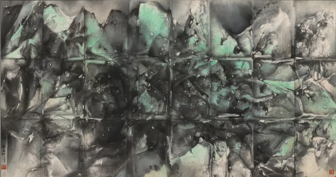 Liu has stored away landscapes from all over the world in his memories, and has gone on to internalize these scenes from Mt. Jade, Mt. Everest, Jiuzhaigou, Mont Blanc, and still other locations visited during eight years as a refugee in the Second Sino‡Japanese War, incorporating them into his own being and then transforming them into abstract landscapes in his signature style.