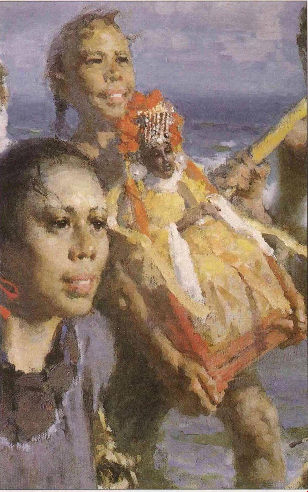 Have they crossed the black channel, to find a better life? "Pioneers Crossing the Sea" is by the artist Ran Maoqin. (courtesy of Ran Maoqin)
