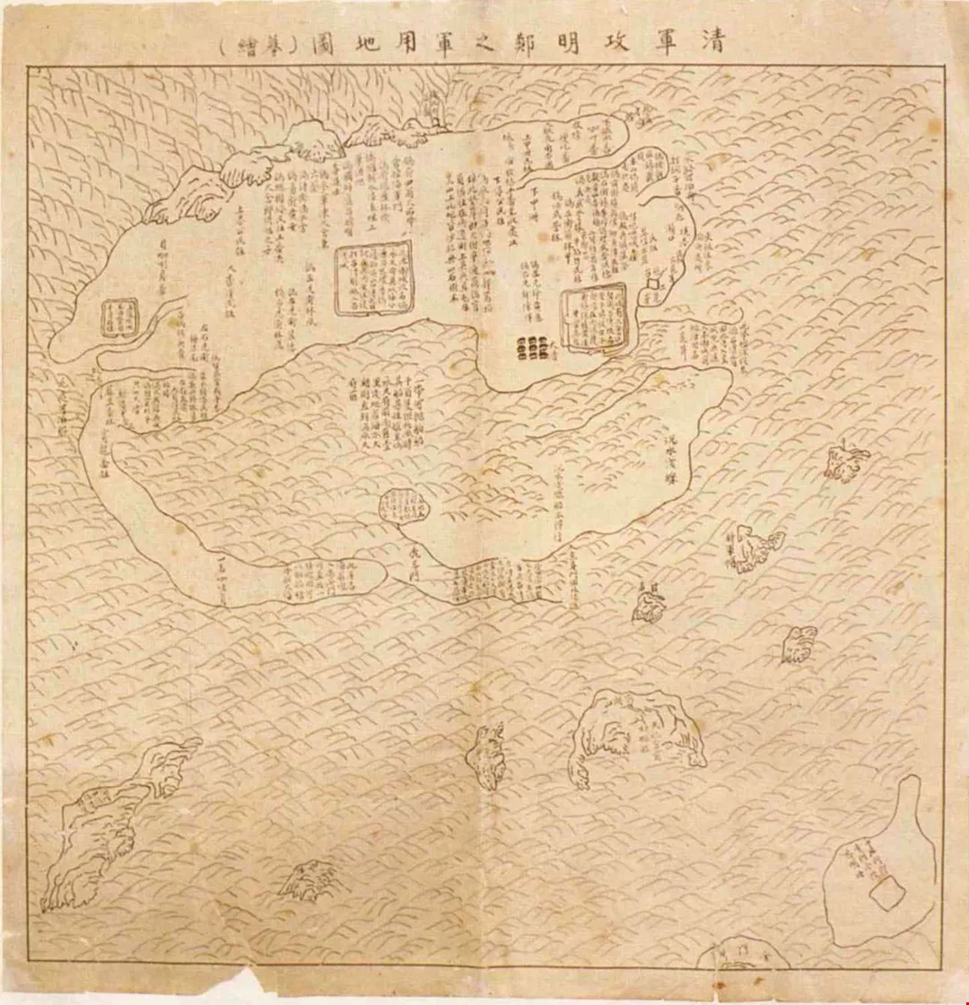 A copy of the "Map That Qing Troops Used to Attack the Pro-Ming Zeng Chenggong Forces," which is in the National Palace Museum's "Northern Taiwan Map Collection." It was modelled from the same source as the National Palace Museum's "Sketch Map of Taiwan." (courtesy of Tsao Yung-ho)