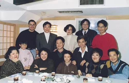 In this rare 1982 photo Madame Wei-wei is seen together with noted figures of the arts with whom she had been friends for many years. In the front row, from left to right, are Fan Man-nung, Wei Shao-ming (daughter of Cheng Shu-min), Mme. Wei-wei, Chiang Hsun, Wang Hsin, Hsi Sung, Ma I-kung, and Huang Yung-hung. In the back row are Lo Lun-so, Wei Tuan, Cheng Shu-min, Wu Ching-chi, and Lin Hwai-min.