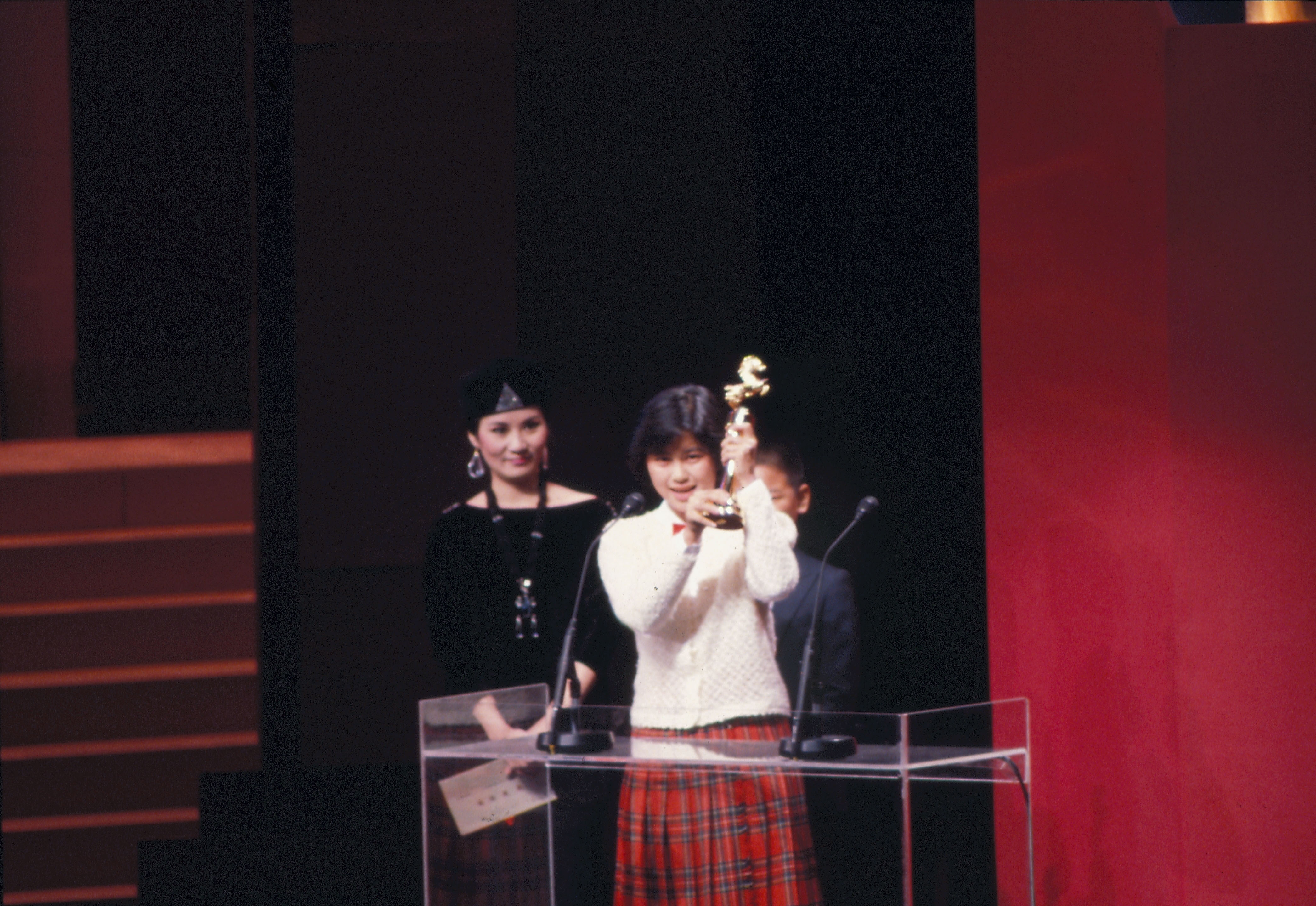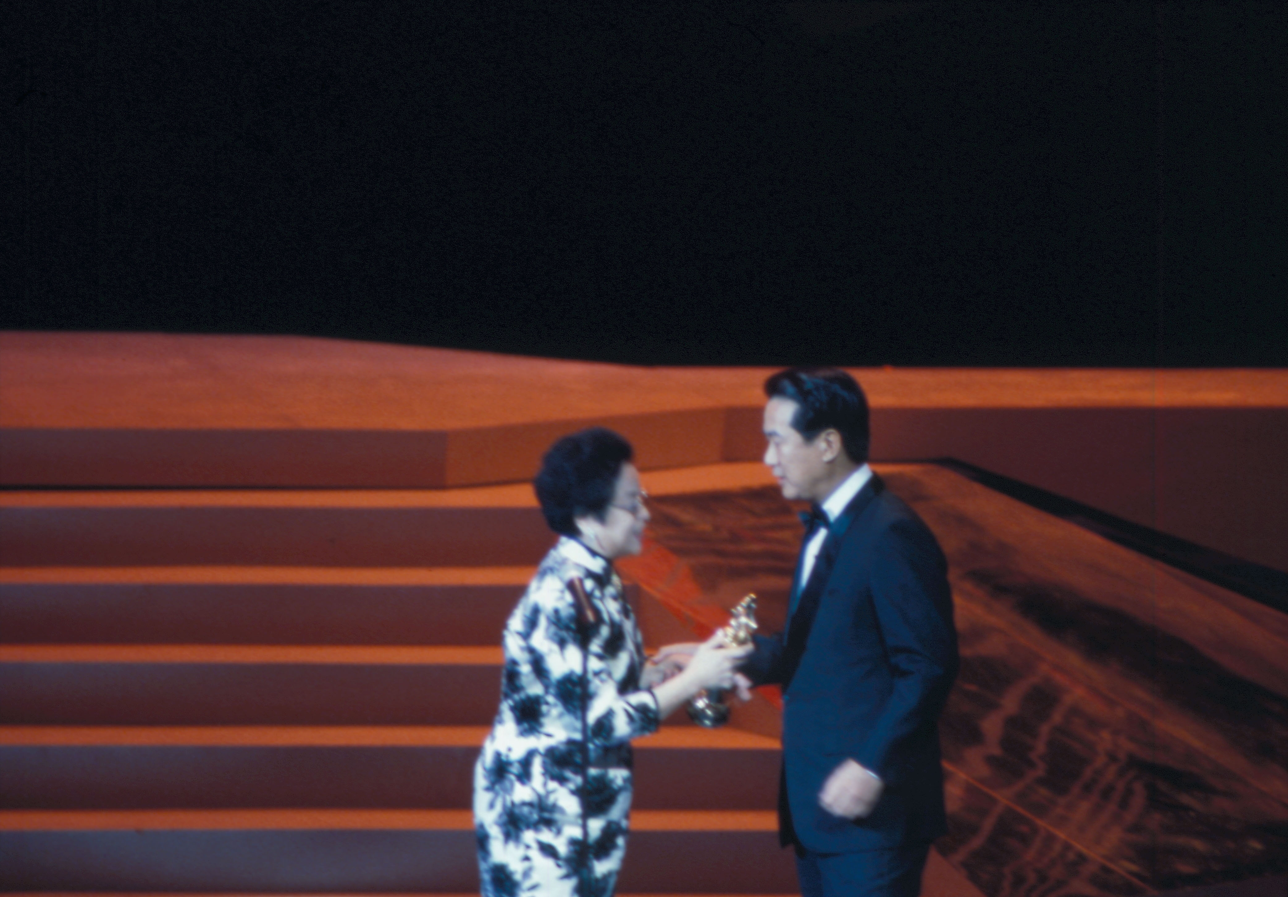 Last year's winner of the Best Supporting Actor Award, Ku Feng, followed up by winning again this year. He congratulated himself for not being trampled by the prancing golden stallion and kept on saying, "I am so happy, so happy!" Actress Ying Ying, who has been in films since the era of Taiwanese-language movies, finally won best supporting actress at the age of sixty-four. Wearing a green cheongsam, she accepted her award, saying in Taiwanese, "I really never thought at this age I would ever receive a Golden Horse."