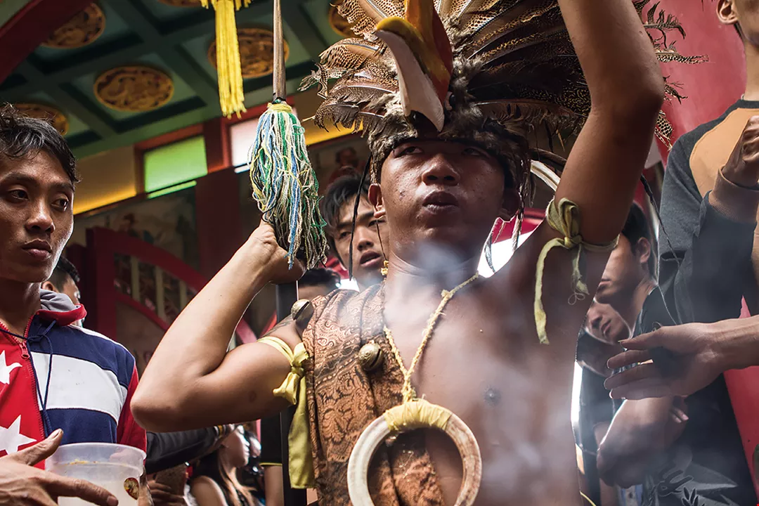 And Tsai Bing Chun, formerly a professional photographer, traveled with Ted Tsai to the city of Singkawang in the Indonesian province of West Kalimantan on the island of Borneo to experience the Cap Go Meh Festival, a part of the Chinese Lunar New Year. According to local custom, Aboriginal shamans, witchdoctors, and deities from Chinese religious traditions all pay their respects at the Bo Gong Temple, a center of local worship where Tudi Gong, an earth god, is the main deity. Tsai Bing Chun describes how he witnessed firsthand the religious trances of shamans and witchdoctors during the festival (similar to Taiwan’s spirit mediums), even as he attempted to create an objective anthropological record. He says it was one of the most unforgettable experiences of his life.
