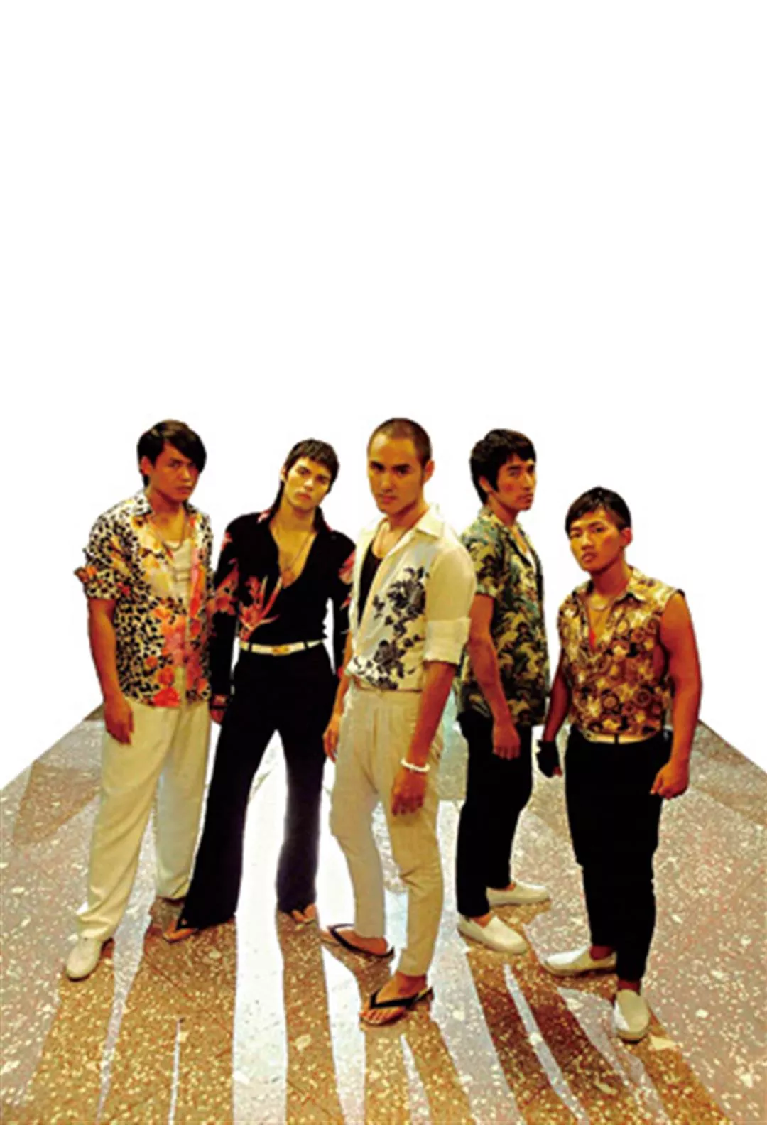 The white sneakers, flip-flops, and flowery shirts worn by the cast of Monga, including leads Ethan Ruan (center) and rising-star Mark Zhao (left), create a look that is eye-catchingly gauche.