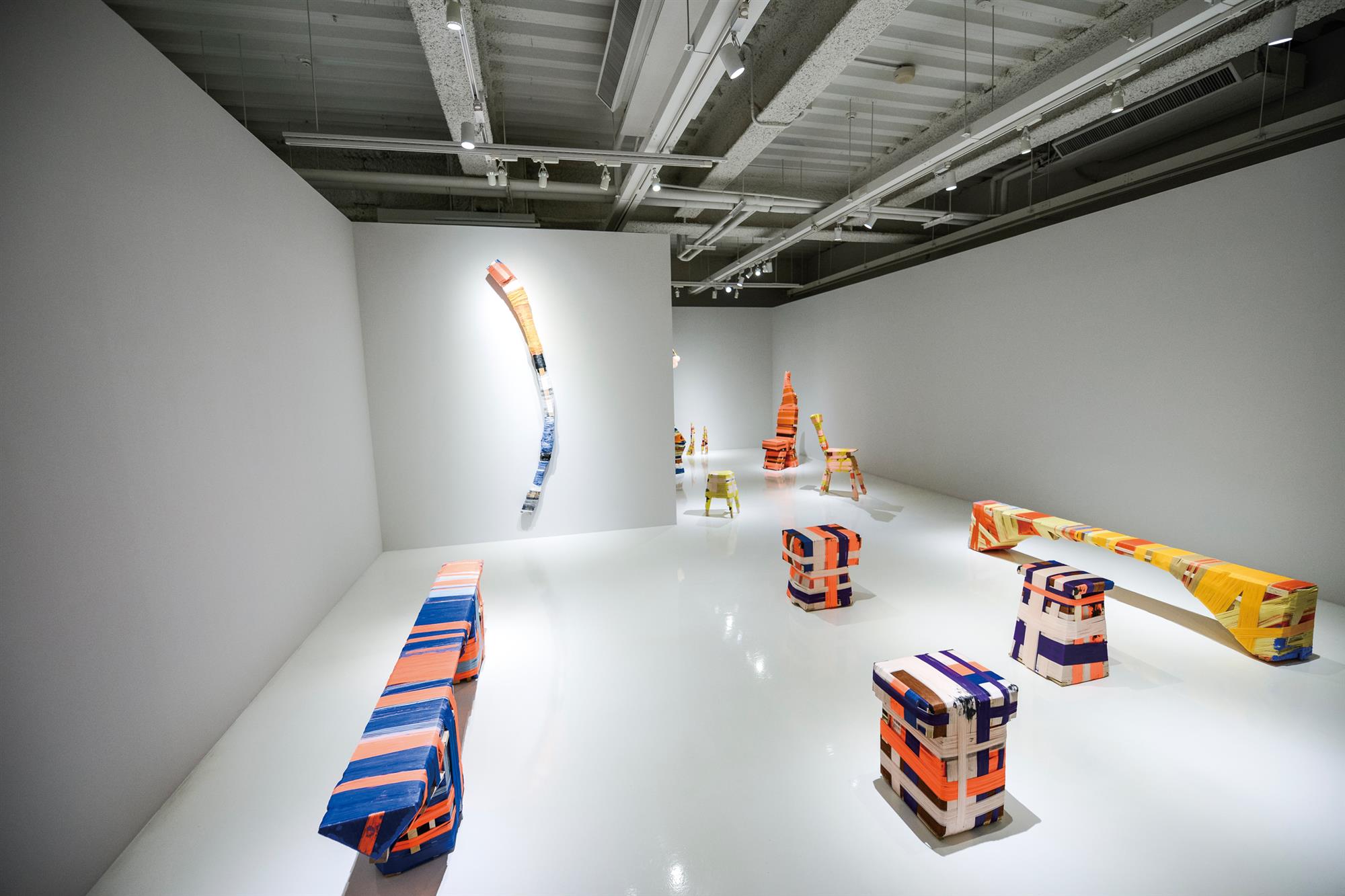 In the White Space of the Xue Xue Foundation, Swedish–Chilean artist Anton Alvarez’s How Long Is a Piece of Thread is on display, the brilliant colors creating a stark contrast with the minimalist space.