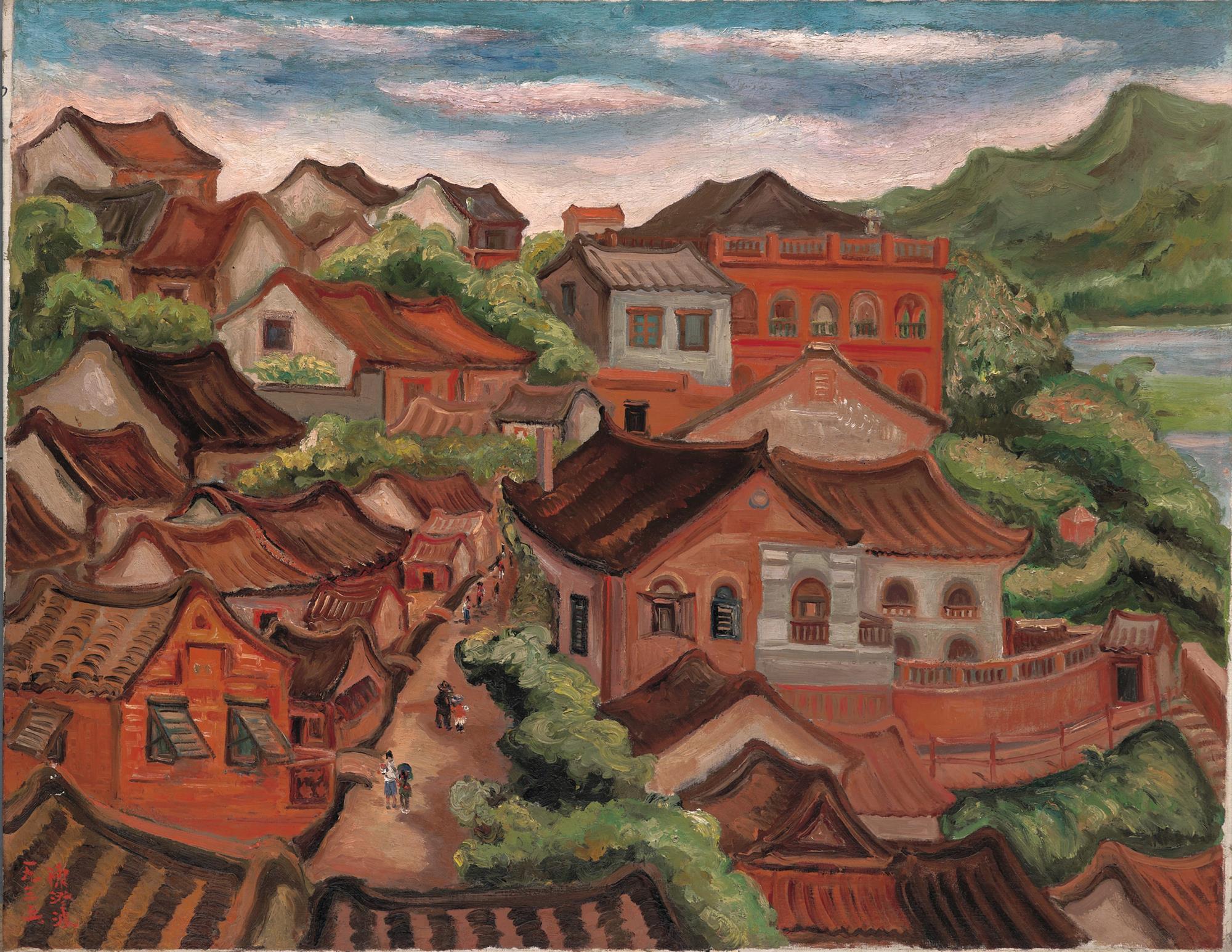 The Xue Xue Colors website hosts a collection of over 8,000 works by 800-plus Taiwanese artists. The color palette shown above presents the color makeup of Chen Cheng-po’s painting Tamsui (left). (courtesy of Xue Xue Foundation)