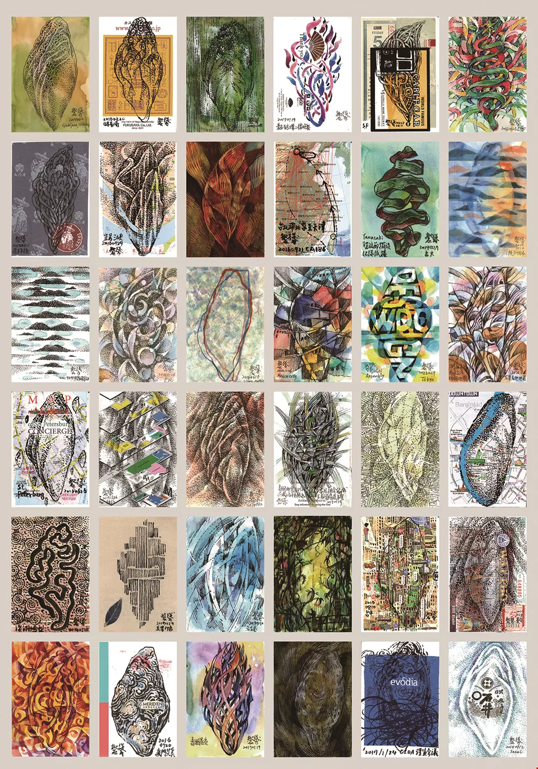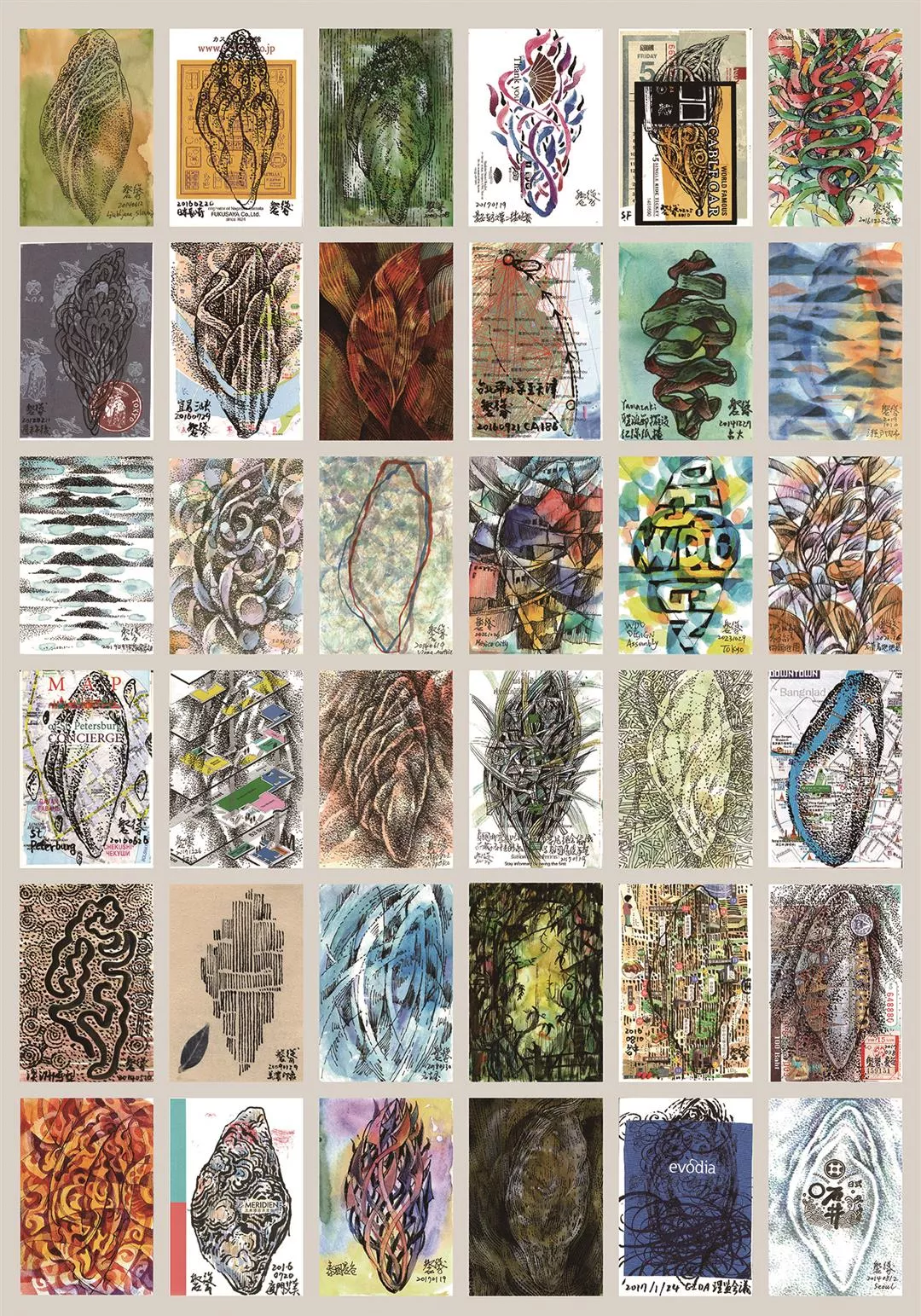 In 2007 Lin won the National Award for Arts in the fine art category. As well as being the youngest awardee, he remains the only designer to have received this honor. His visions of Taiwan have taken shape as strikingly memorable posters. Since 2008, while traveling by air or during his free time, he has been using brush pens, fountain pens, and technical pens to create pointillistic representations of his beloved homeland, drawing on a variety of motifs such as foliage, flowers, and vines. The resulting images belong to a distinctive series called Letters Home to Taiwan, which is a work in progress.