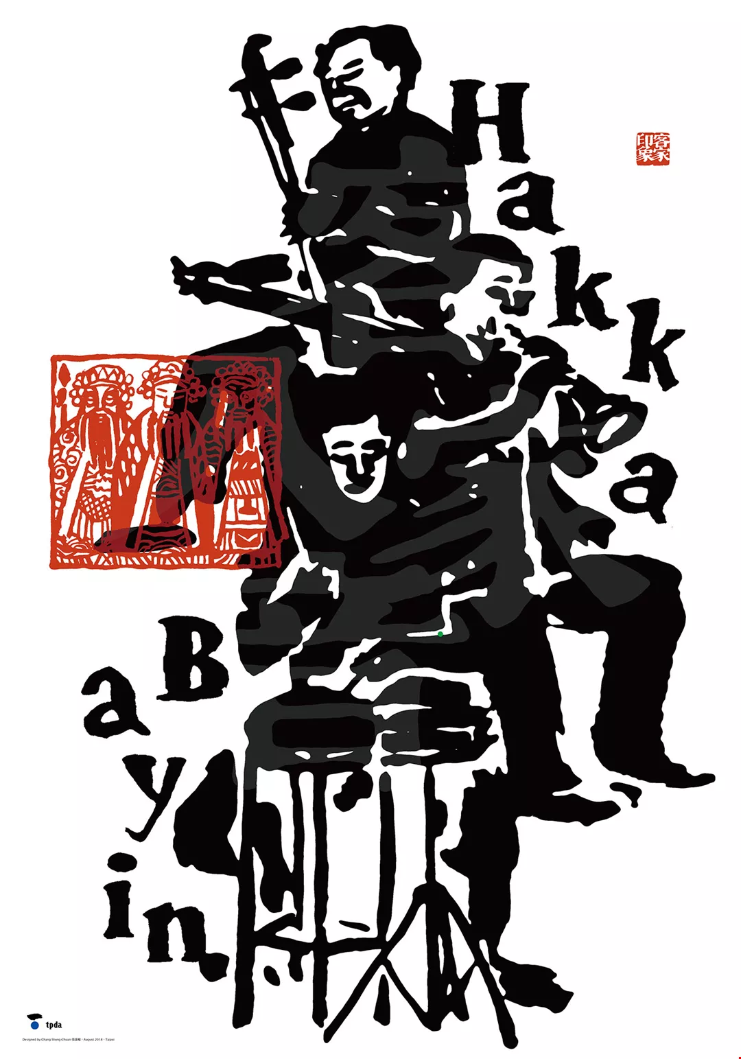Taiwan is never defined by homogeneity. Home to an ethnically diverse population—including the indigenous peoples, Han Chinese of mainly Minnan or Hakka extraction, and other groups—the sweet-potato-shaped island resists being pigeonholed. Believing that Taiwan is diverse enough to attract sustained interest, Lin draws our attention to posters that look at the country from various facets. Chang Fang-pang’s Seeing Our Own Moonlight (2025) turns the spotlight on Taiwan by assembling full and half-moons into a glimmering vision of the island. Through lines and shapes reminiscent of traditional seal carving, Chang Sheng-chuan depicts a Hakka musical ensemble in Hakka Bayin (2018), which looks both classical and modern, with a hint of jazz.