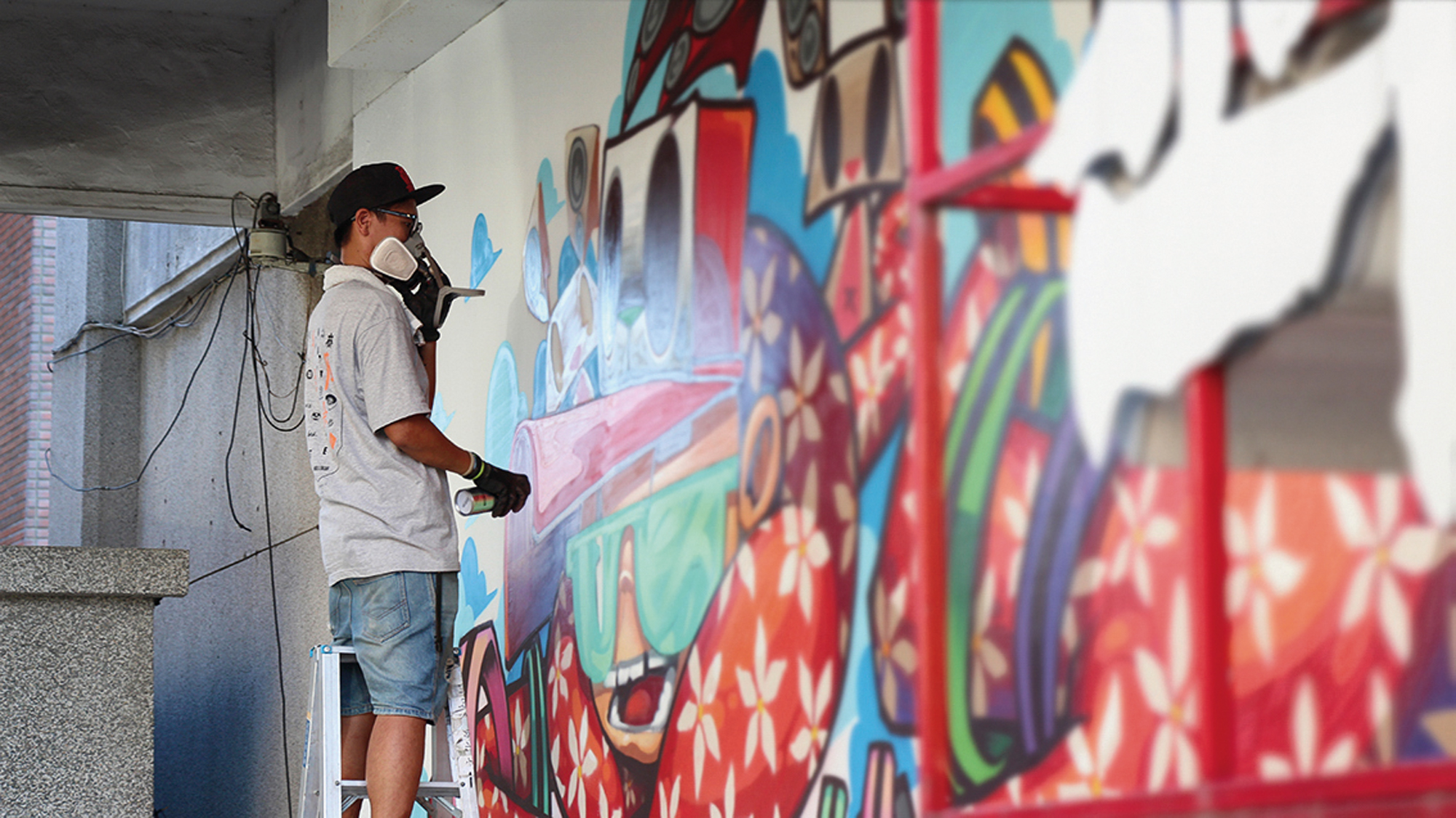 The thing that has inspired him to stick at his art for 12 years so far, he says, is a desire to show Taiwanese society the positive side of graffiti art, and that it can be more than just a diversion for idle youth. He leaps at every opportunity that presents itself, because the more of his works are out on the streets, the more visible they are, and the more visible they are, the more visible he is.
