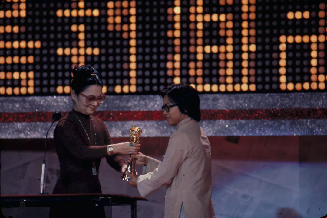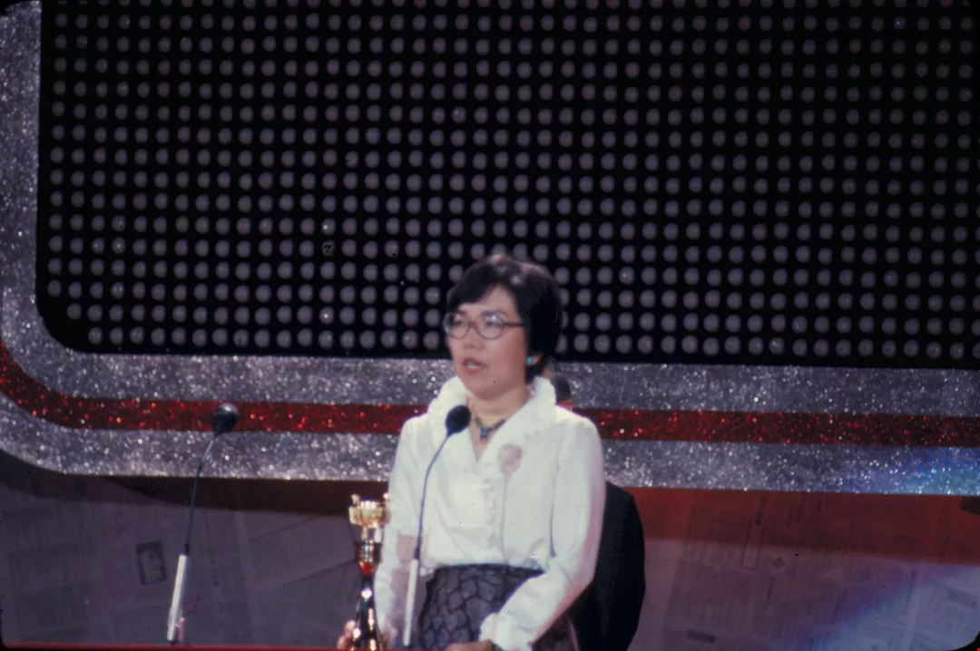 The tension which pervades Hollywood movie award presentations was nowhere in evidence during the Golden Tripods awards presentation. Rather, in accordance with Chinese custom, lists of winners were announced prior to the ceremony, while films and multimedia slide displays of winning efforts provided the background as the winners appeared for their awards. Every effort was made to provide the audience a clear sense of why each particular award was won. To that end, the emceeing was done by experts in each field. For example, in the books category, noted poet Yu Kuang-chung and writer and radio hostess Lo Lan did the honors. Publisher Liu Shau-tang of Biography Magazine and editor Chien Ching-hui of the Literary Criticism Magazine announced the magazine awards. Radio program hostess Tao Hsiao-ching and singer-comedian Chang Ti co-hosted the recording category. China Daily News Deputy Director Huang Chao-yen and Chang Hsu-hua, Chairman of the Journalism Department of the Chinese Culture University, emceed the journalism category.