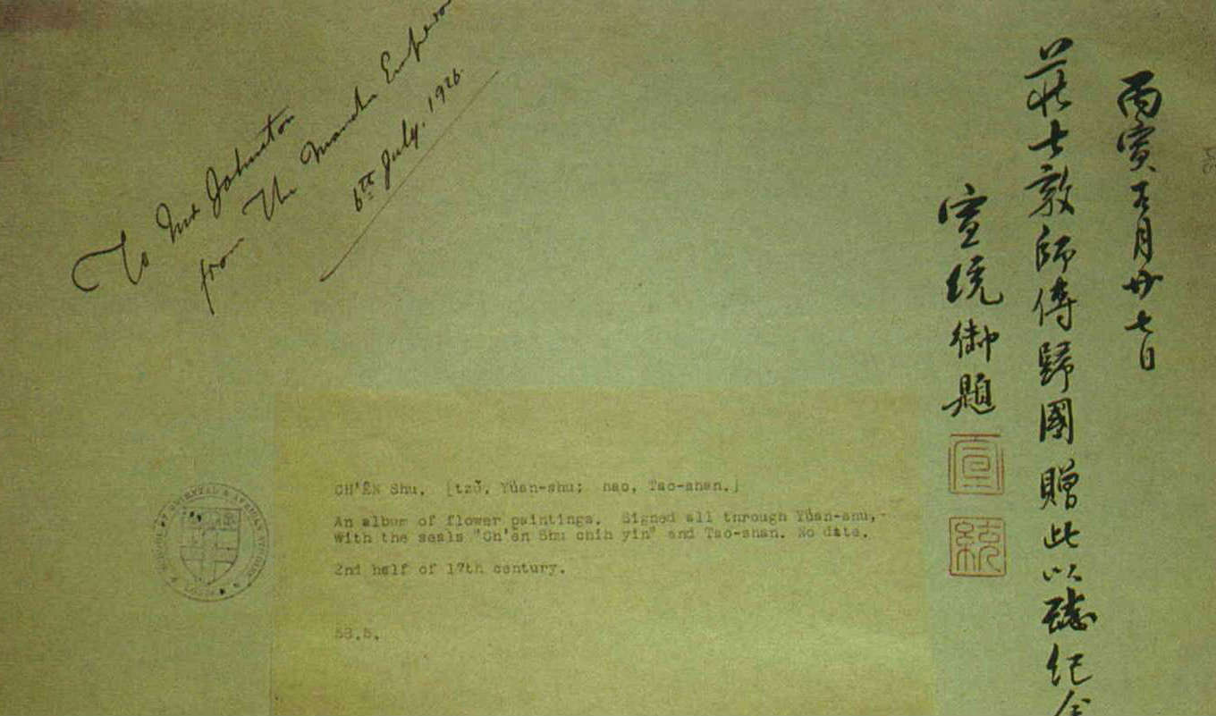 This album given by "the Last Emperor" to his English tutor, Reginald Johnston, is kept in the strongroom of the SOAS library.