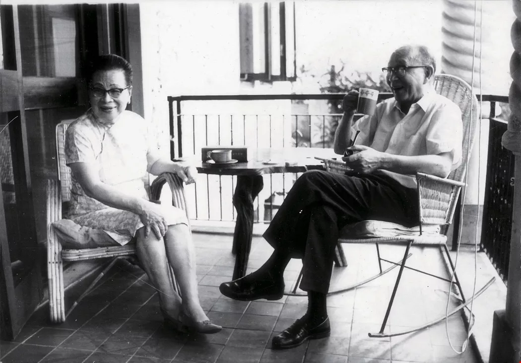 Lin Yutang and his wife Liao Tsui-feng, who were always savoring refined pleasures in daily life, are pictured here sipping tea on the balcony of their home. (courtesy of the Lin Yutang House)