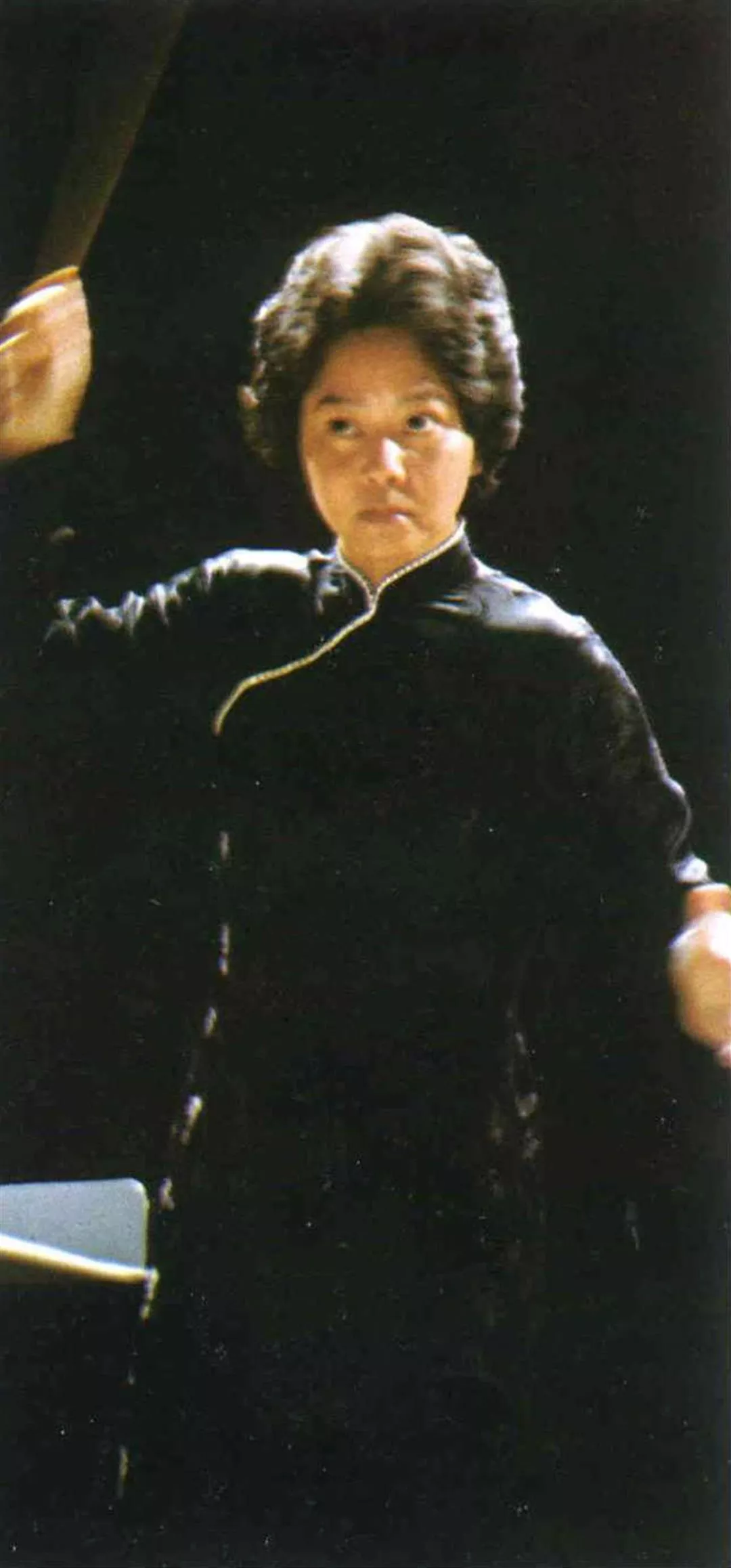 Wearing a black chi pao rimmed with silver the elegant conductor wore a calm and childlike smile belying the passion she mustered with her baton, which seemed like a magic wand in her hands. The music seemed to pervade her whole being, even to circulate in her blood. By nodding her head, clenching her fist or waving her arms, she evoked feelings which enraptured the audience. Her facial expressions were even more meaningful and vivid. Sometimes she would place her fingers on her lips as she smiled intoxicatingly; on other occasions she more resembled an angry lion as she gesticulated wildly with flowing hair and glowing eyes.