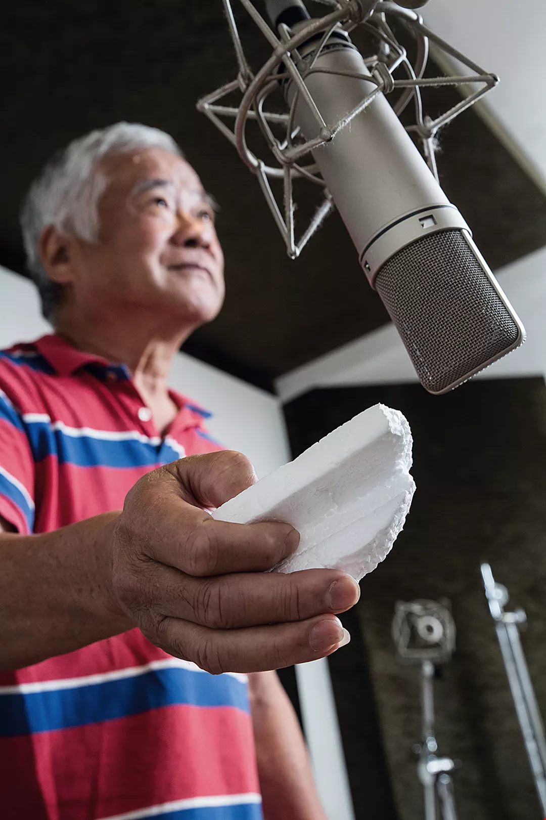Relying on the simplest of devices, Hu can create sound effects that are very true to life. He is one of only a small number of such workers—known as “Foley artists”—in Taiwan.