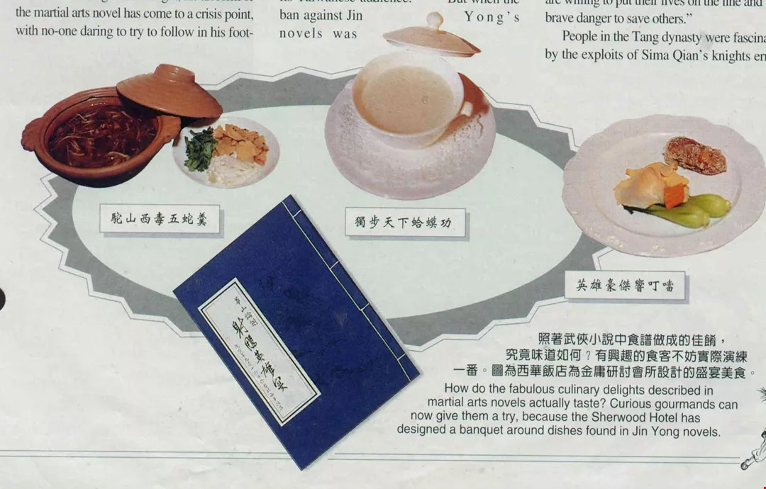 How do the fabulous culinary delights described in martial arts novels actually taste? Curious gourmands can now give them a try, because the Sherwood Hotel has designed a banquet around dishes found in Jin Yong novels.