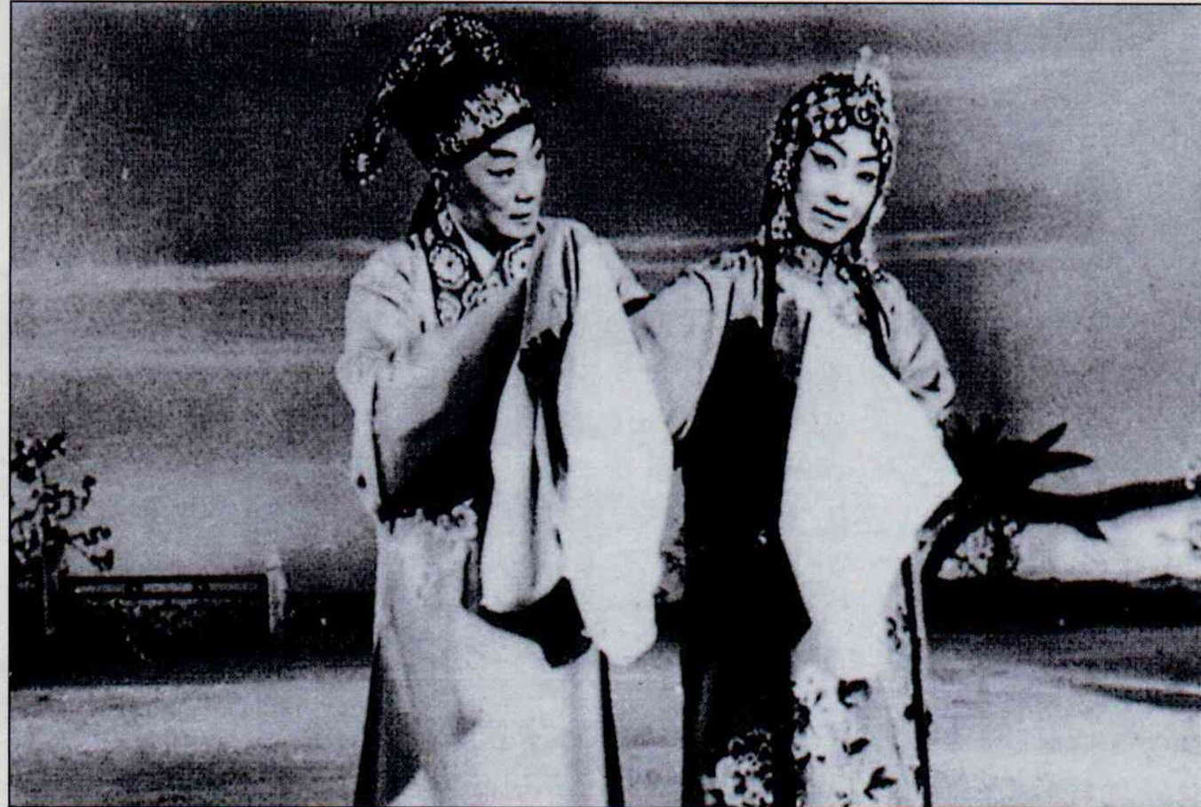 Kun Opera requires a very firm grasp of fundamental skills. In the past, Peking Opera stars all studied Kun Opera to establish a solid foundation for their own art. The picture shows Peking Opera star Mei Lan-fang (right) and Yu Chen-fei performing together in the film of "The Dream in the Garden" in 1960. (courtesy of Kung Min)
