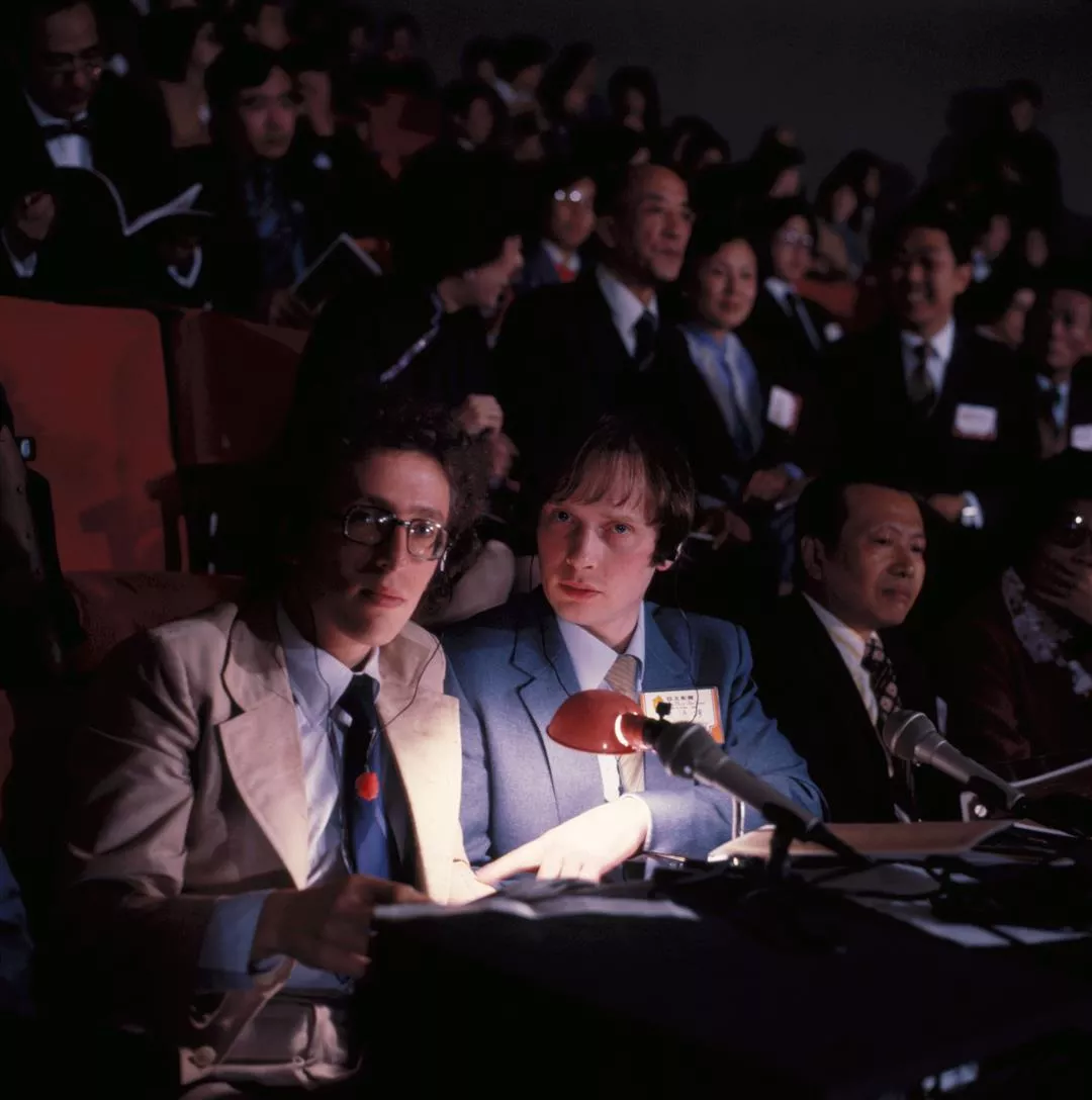 5. A translation of the proceedings was provided for all foreign guests. Here translator Martin Merz (left) is seen with English film critic Derek Elley.