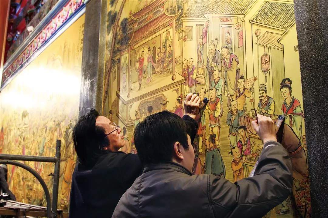 Liu’s work appears in temples all over Taiwan. He has repaired pieces at Taipei City’s Dalongdong Bao’an Temple, Wanhua’s Qingshan Temple, New Taipei City’s Upper Taishan Temple, and the National Center for Traditional Arts in Yilan, as well as contributing to many temples under construction. However, temple art was largely looked down upon until decorative painting began to undergo its recent positive reevaluation.