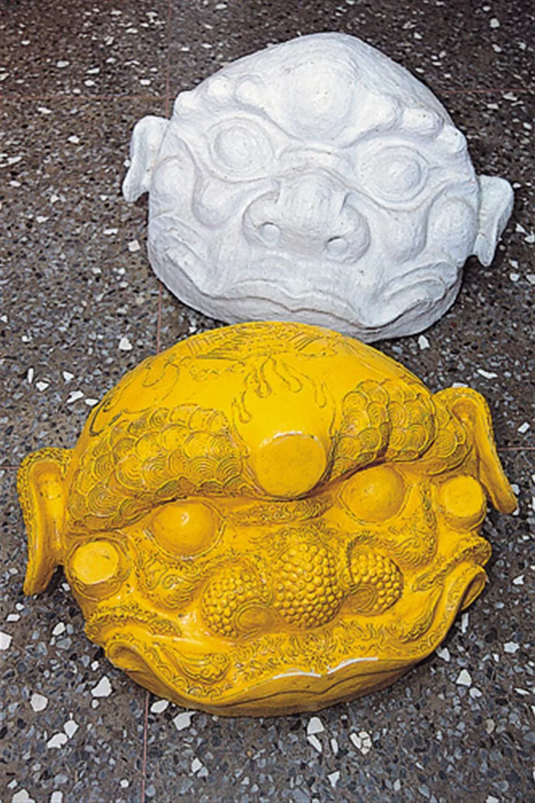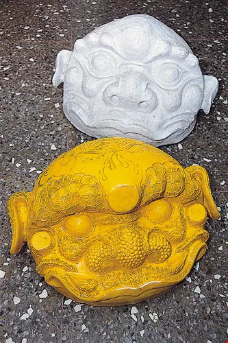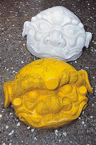 Handmade Taiwanese lion heads, heavy and imposing, are the result of an extremely elaborate production process.