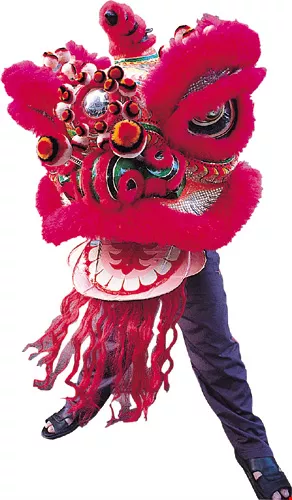 When time for a temple fair rolled around, natural rivalries between villages created tension. Martial arts halls from different fighting schools were intensely competitive, and apt to talk trash to each other. Words often led to brawls. On such occasions, the short sabers in the lion's mouth, and the stilettos carried by the lion dancer in the rear, came in extremely handy.